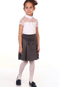 Оригинальная блузка из мягкой и приятной к телу вискозы, комбинированная тонкой сетчатой тканью, подчеркнет нежность плеч и хрупкость детского образа. |