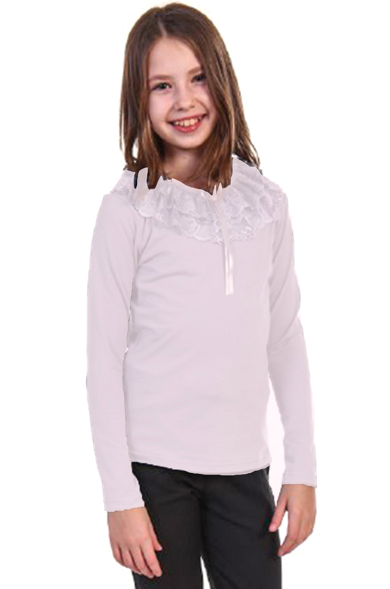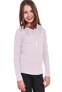 Нарядная кофточка для девочки из хлопка с лайкрой. Двойной воротник из благородного кружева понравится каждой красавице! Ткань кулирка с лайкрой качества пенье. |