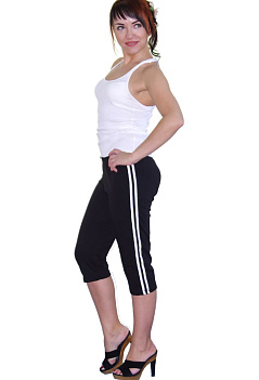 Классные женские бриджи, выполнены из эластичного кулирного полотна с лайкрой. Благодаря синтетической нити прекрасно тянутся, облегая фигуру и подчеркивая её достоинства. Бриджи декорированы контрастными лампасами из износоустойчивого материала. Отличный вариант для ежедневных спортивных занятий. |
