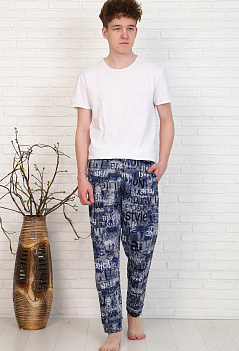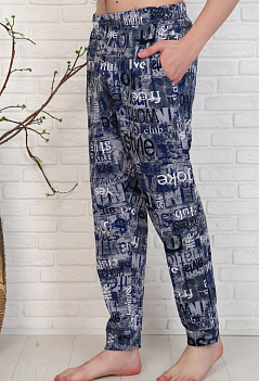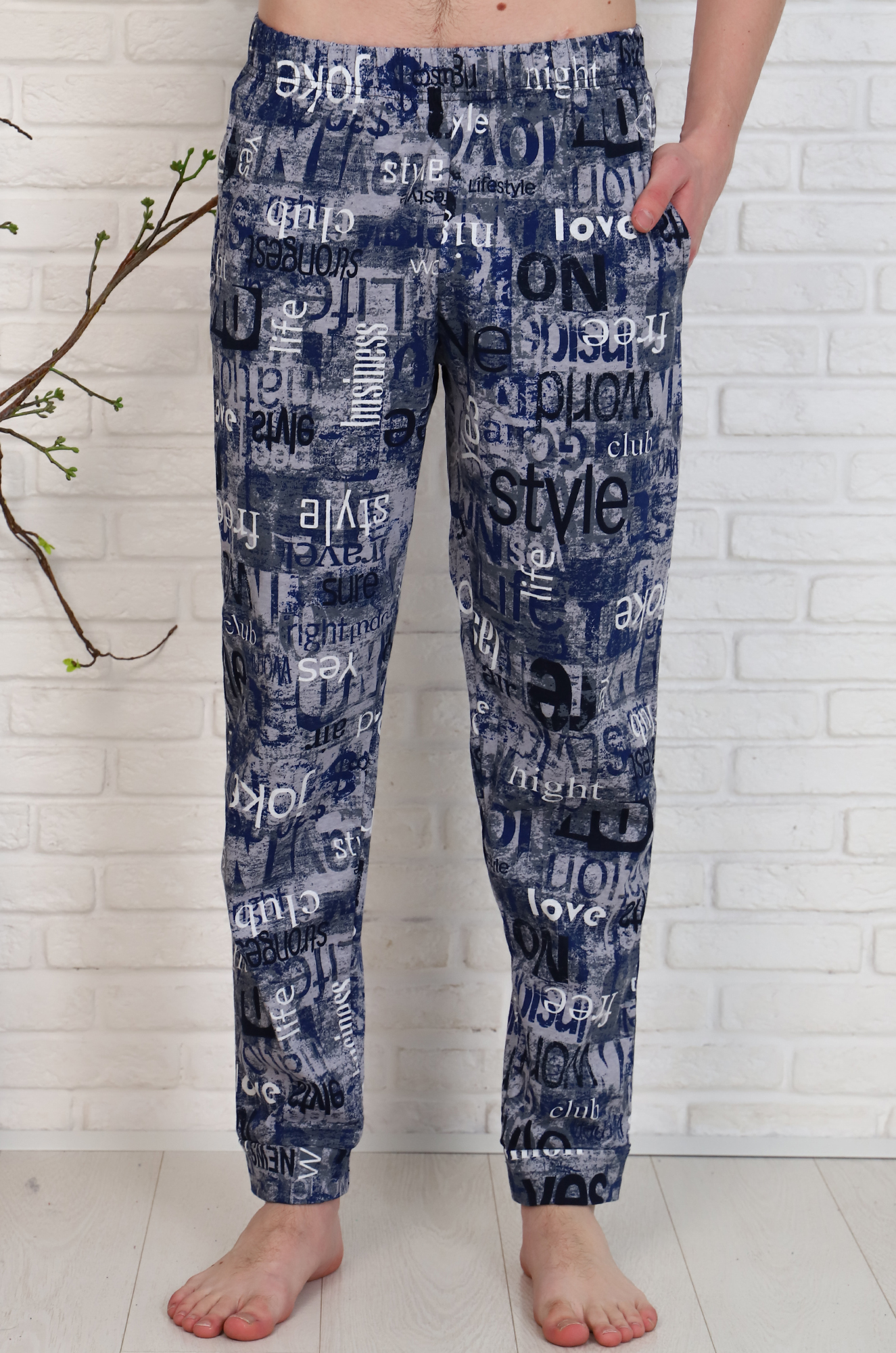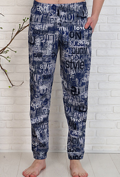 Домашние хлопковые брюки для мужчин. Модель снизу на манжете из основной ткани, удобные боковые карманы, пояс на резинке. Ткань кулирка, мягкая, приятная к телу. |