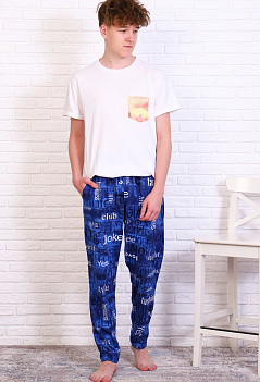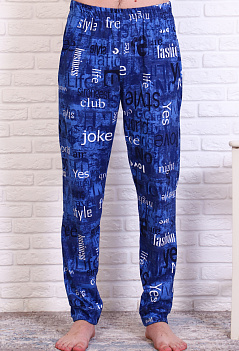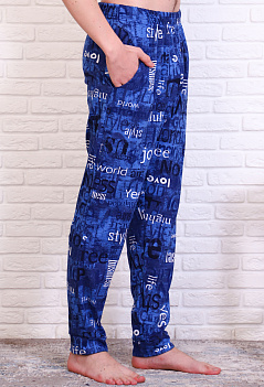 Домашние хлопковые брюки для мужчин. Модель снизу на манжете из основной ткани, удобные боковые карманы, пояс на резинке. Ткань кулирка, мягкая, приятная к телу. |