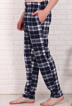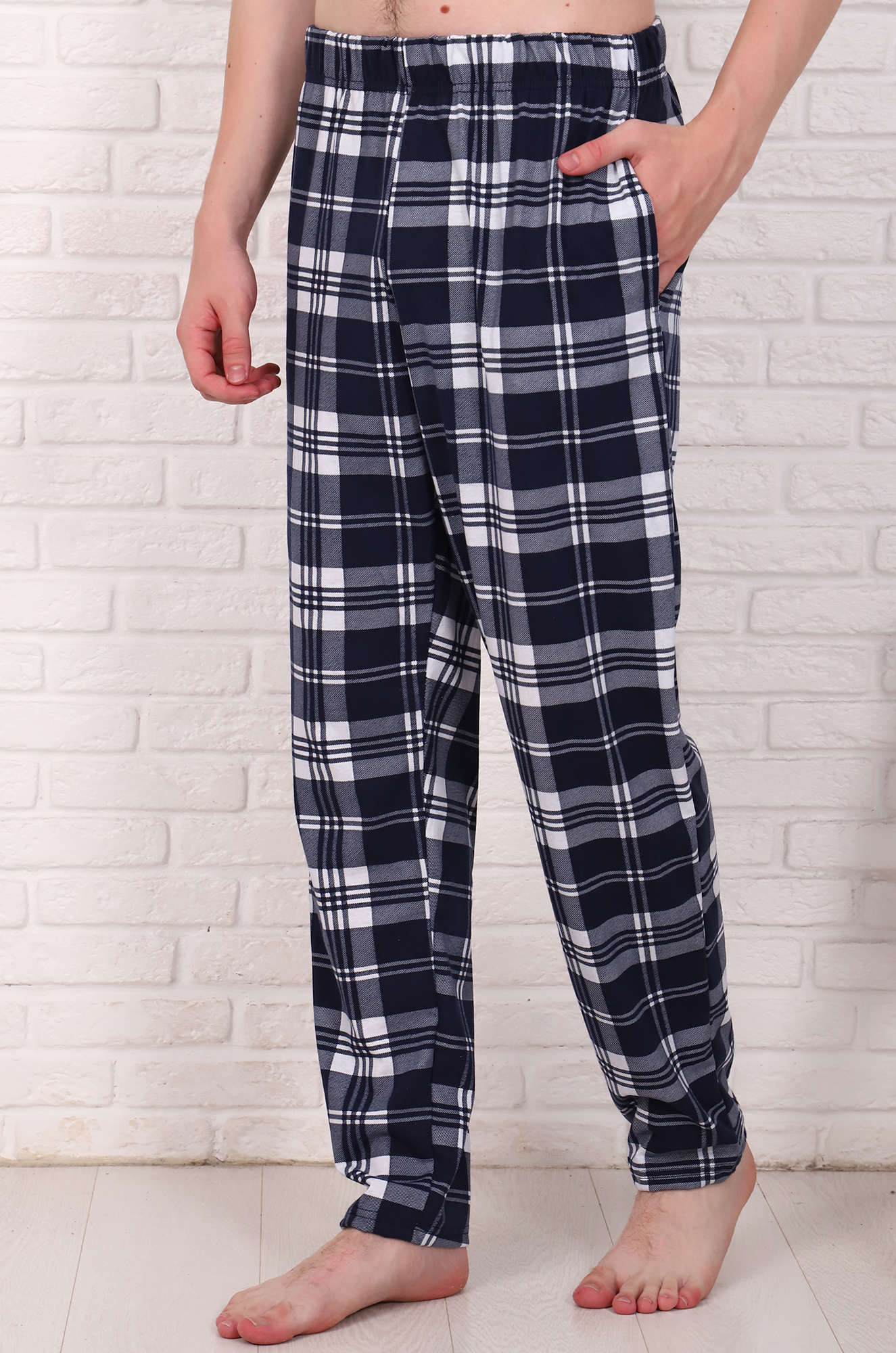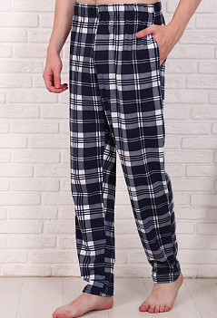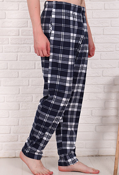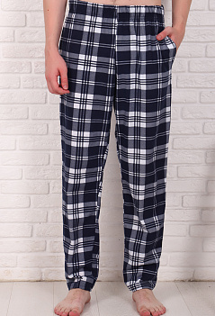 Уютные домашние хлопковые брюки "в клетку". Модель немного зауженная книзу, с боковыми карманами, пояс на широкой резинке. Ткань - кулирка, мягкая и приятная к телу. |