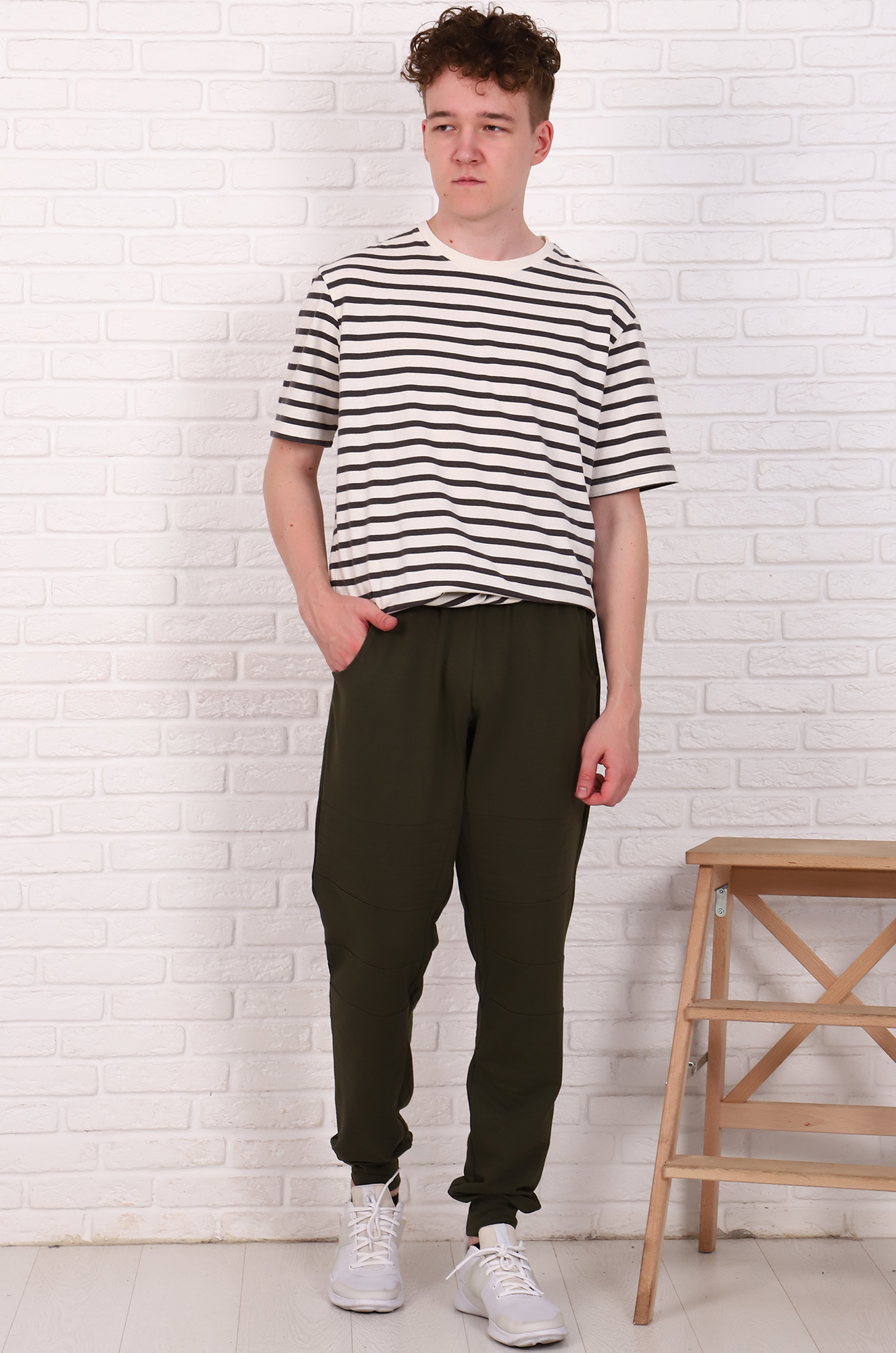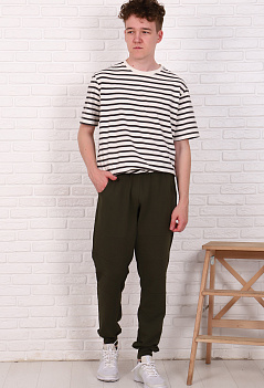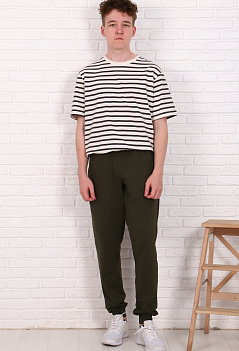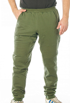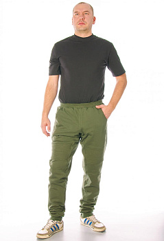 Модные зауженные спортивные брюки со стильной отстрочкой. Модель сложная, с отрезными деталями. Удобный пояс на резинке, внизу манжеты. Ткань - мягкий, теплый футер с небольшим начесом. |
