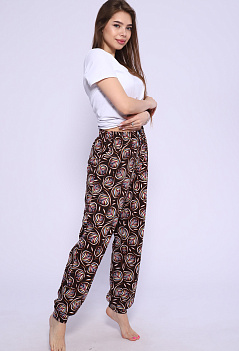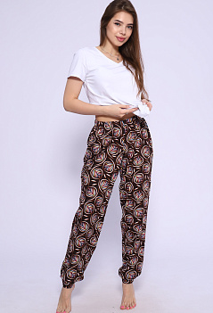 Легкие хлопковые брюки позволят Вам чувствовать себя комфортно в жаркий солнечный день. Модель свободного кроя, снизу на манжете, удобные боковые карманы, пояс на широкой резинке. Ткань кулирка. |