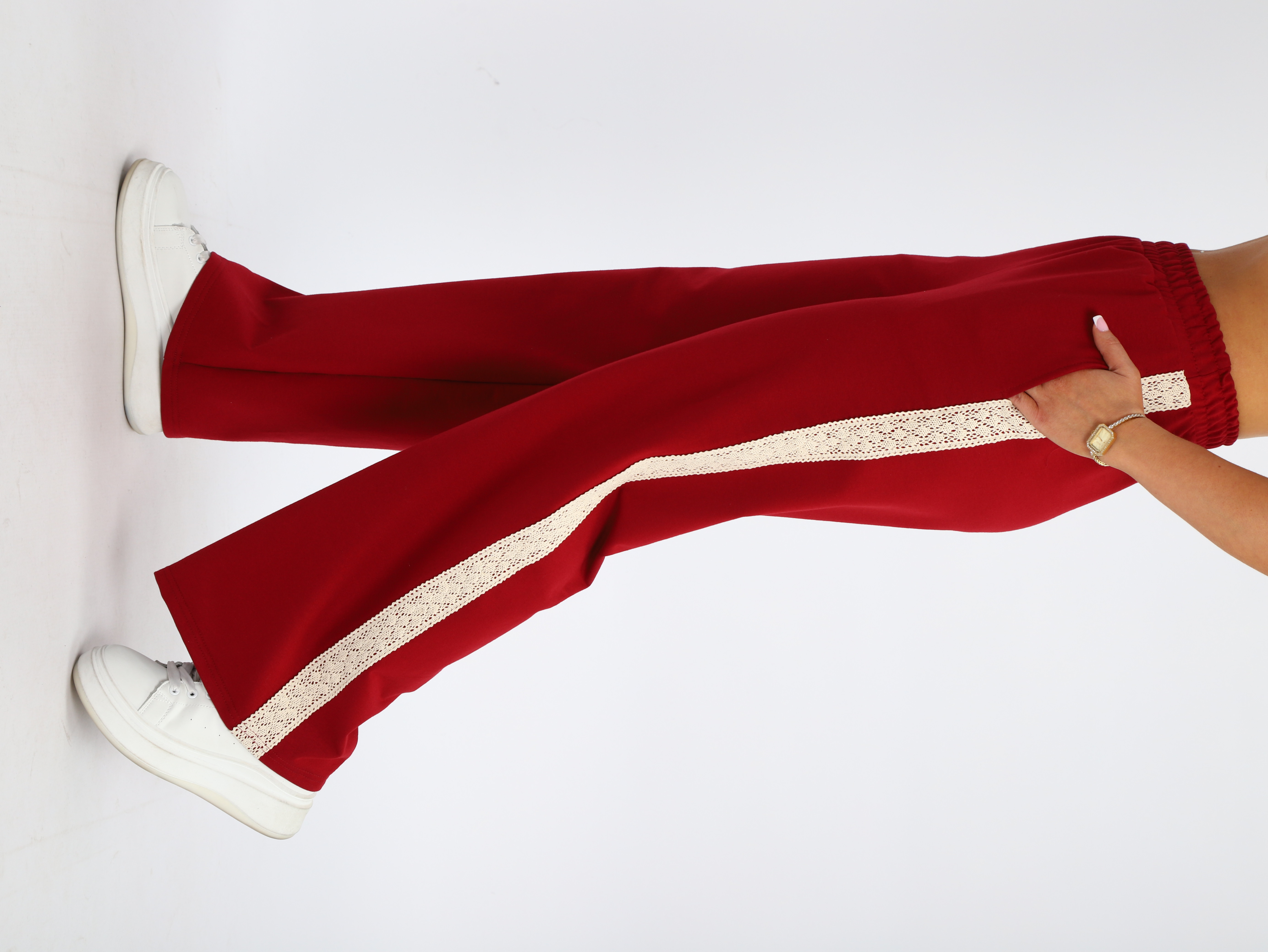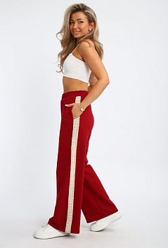 Женские стильные брючки "палаццо" с лампасами из кружева. Пояс на широкой резинке, удобные боковые карманы, очень комфортная посадка. Ткань футер с лайкрой, приятная к телу и практичная в носке. |