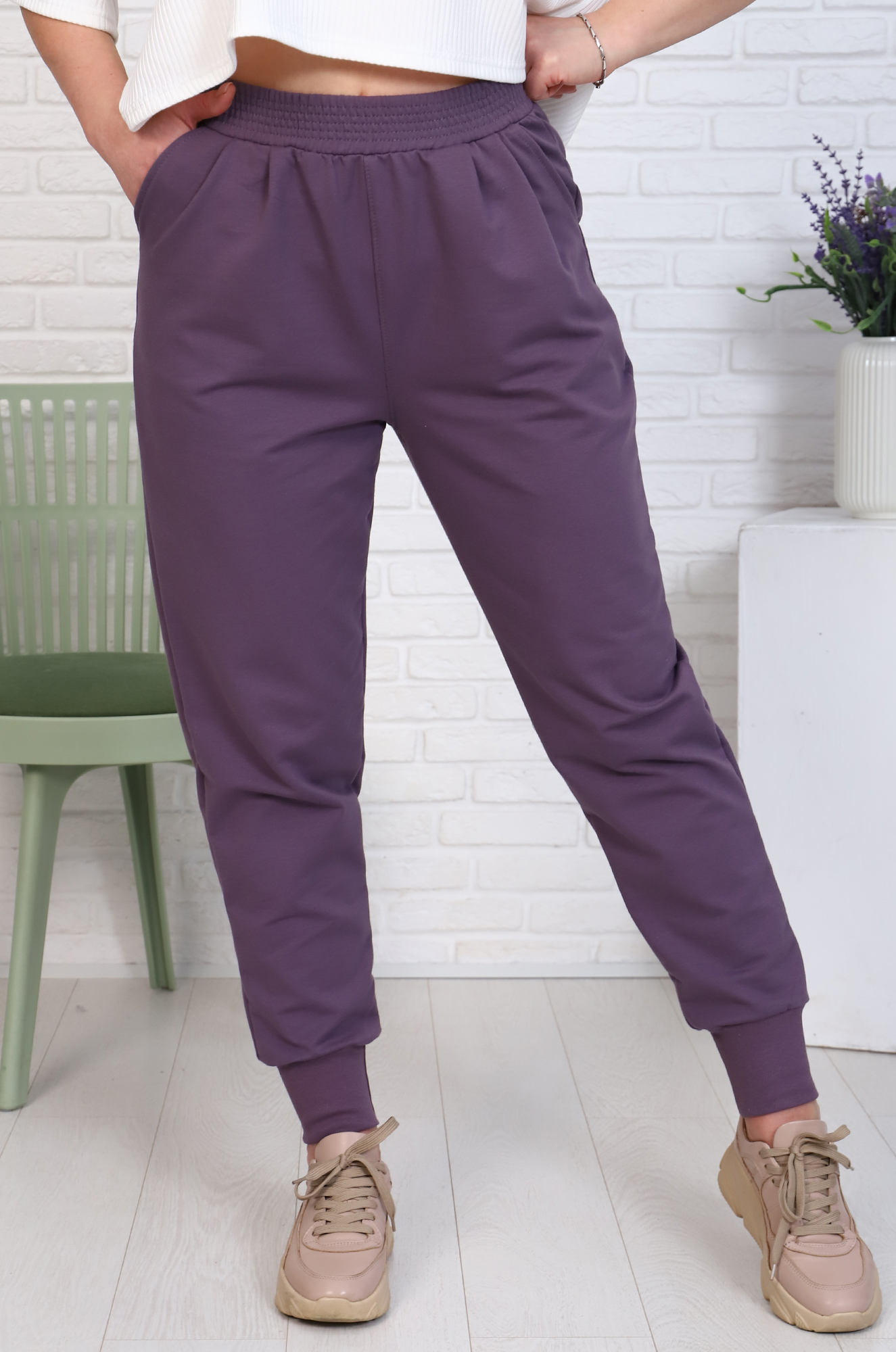 Эффектные спортивные брючки свободного кроя - это идеальный вариант для прогулок. Идеальная, очень комфортная посадка, пояс на широкой резинке, с защипами, простроченный на спец. машине. Удобные карманы боковые и накладные сзади, снизу модель на высоком эластичном манжете. Ткань петлевой футер двухнитка, с добавлением лайкры. |