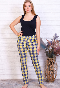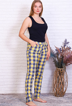 Зауженные домашние брючки с карманами, пояс на резинке. Брюки отлично сидят на любой фигуре. Ткань легкое и приятное к телу кулирное полотно. |