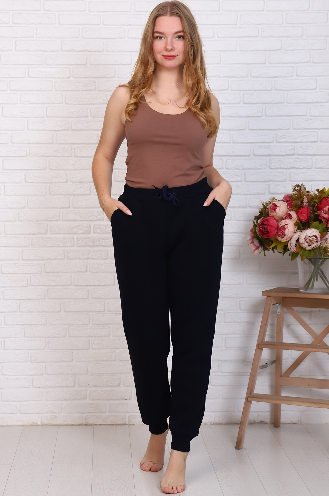 Тёплые и уютные зимние брюки для активного отдыха или вечерних прогулок. Модель снизу на эластичных манжетах, пояс на резинке регулируется шнурком, удобные боковые карманы. Ткань футер 3-х нитка с начёсом - мягкий, приятный к телу. |
