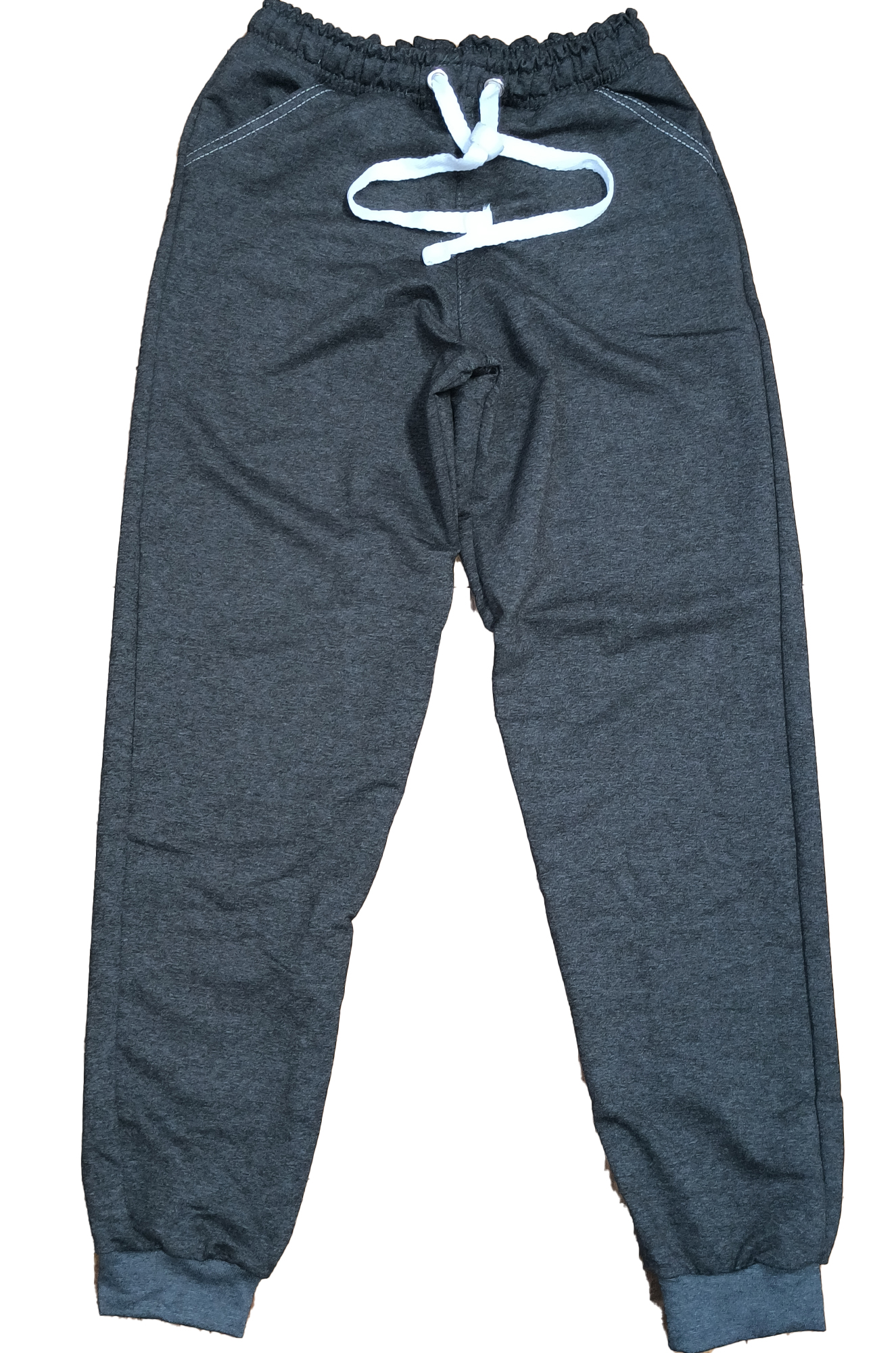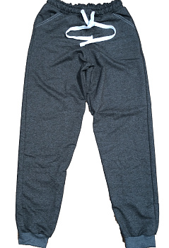 Брюки спортивного стиля, снизу на манжетах, удобные боковые карманы, пояс на шнурке. Ткань - петельчатый футер с лайкрой. |