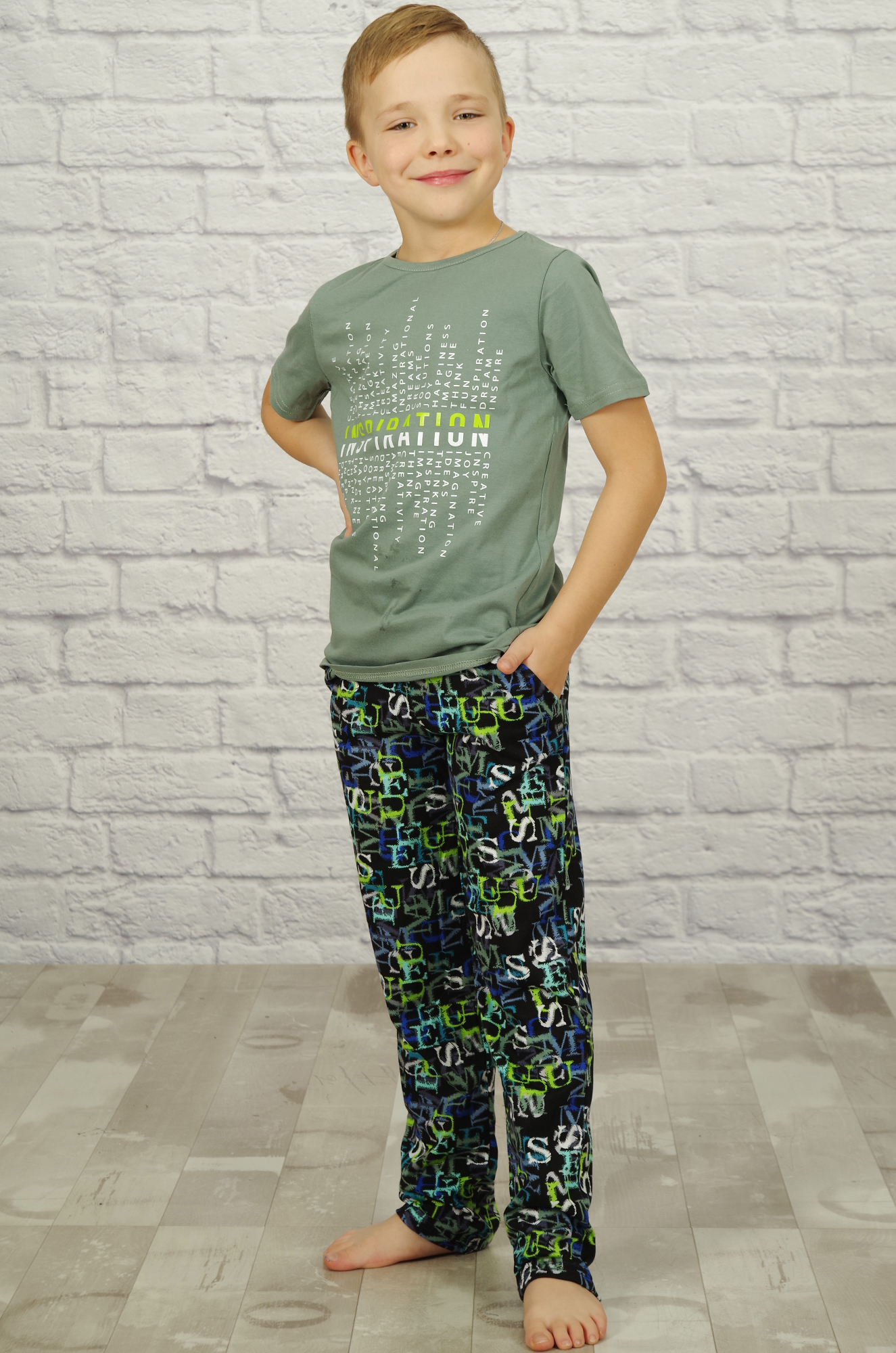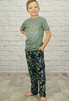 Удобный хлопковый костюм подойдёт и для сна, и для домашних игр. Однотонная футболка прямого кроя украшена печатным принтом. Брюки с набивным рисунком, есть боковые карманы, пояс на резинке. Ткань кулирка. |