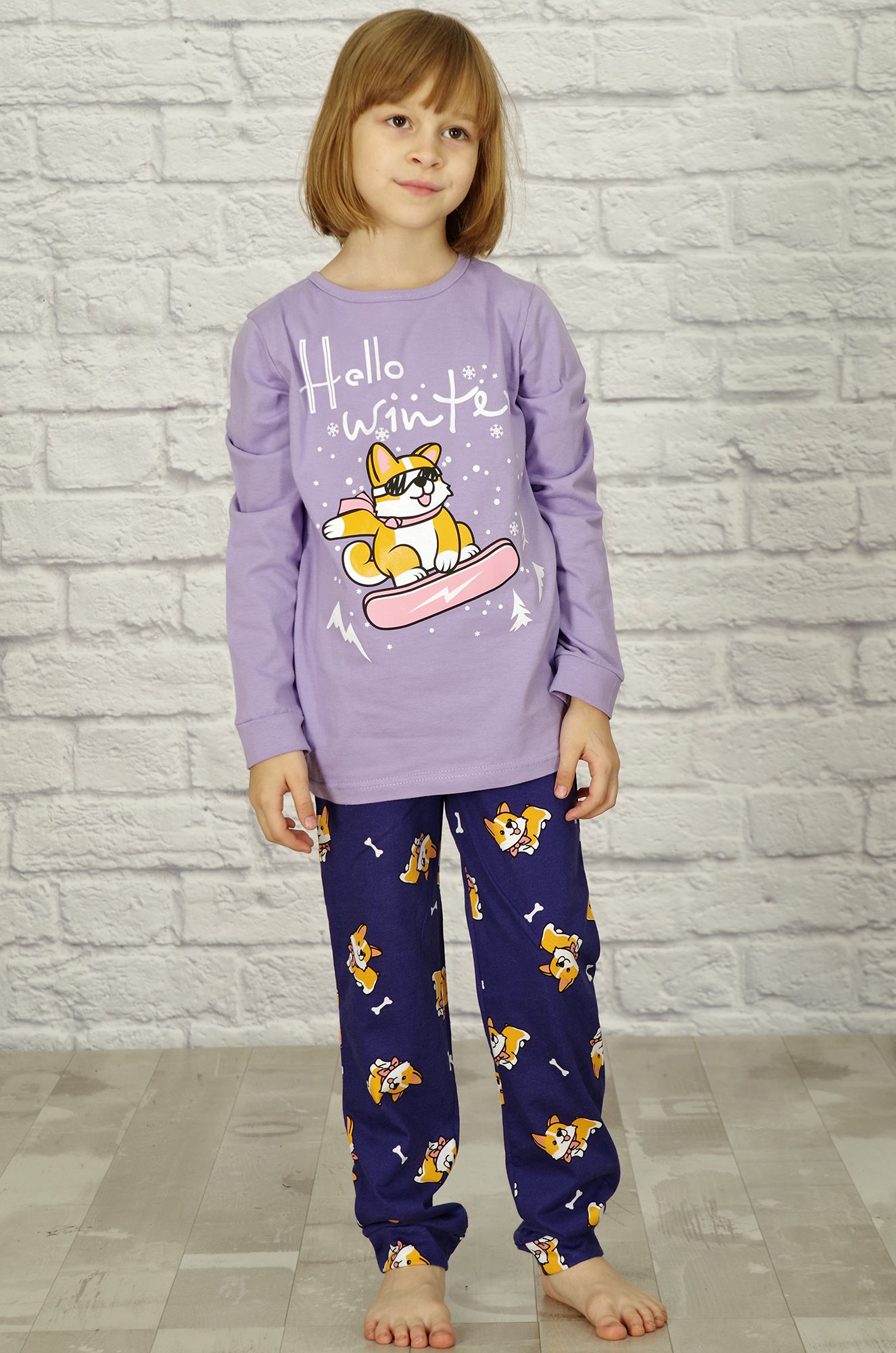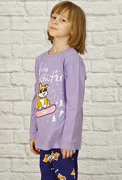 Удобный хлопковый костюм подойдёт и для сна, и для домашних игр. Его яркая красочная расцветка понравится и мальчикам, и девочкам. Однотонная футболка прямого кроя украшена печатным принтом. Брюки с набивным рисунком, внизу на эластичных манжетах, пояс на резинке. Ткань кулирка. Мягкая и приятная к телу.  |