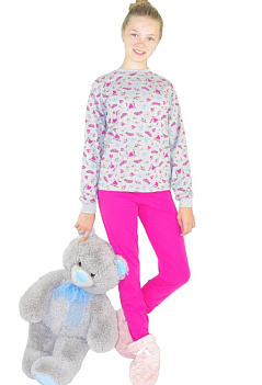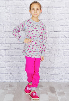Нежная пижамка для девочек. Длинные брючки на манжетах, кофточка с длинным рукавом. Модель выполнена из кулирного полотна со 100% содержанием хлопка, неприхотлива в уходе и надолго сохраняет яркие цвета. |