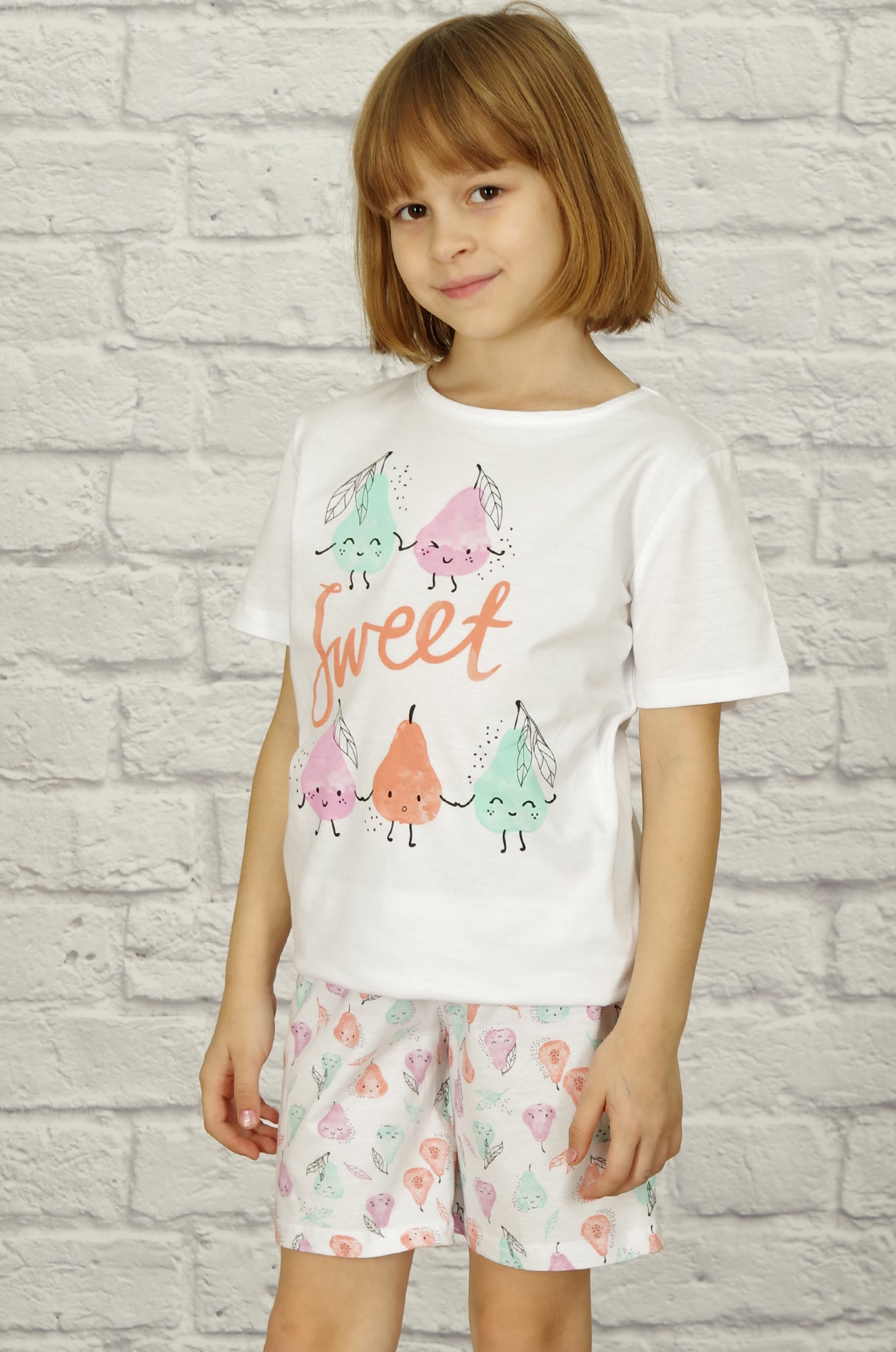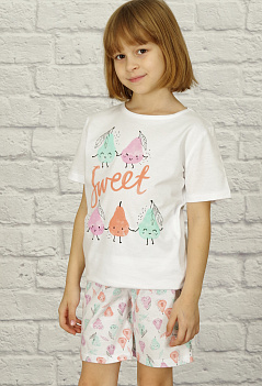 Удобный домашний вариант для сна и отдыха - хлопковый костюм с шортами и футболкой. Футболка прямого кроя, на полочке печатный принт, рукав втачной. Шорты с комфортной посадкой, пояс на резинке. Ткань кулирка. |
