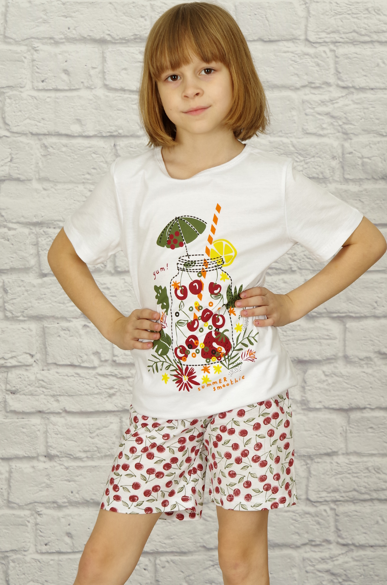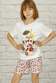 Удобный домашний вариант для сна и отдыха - хлопковый костюм с шортами и футболкой. Футболка прямого кроя, на полочке печатный принт, рукав втачной. Шорты с комфортной посадкой, пояс на резинке. Ткань кулирка. |