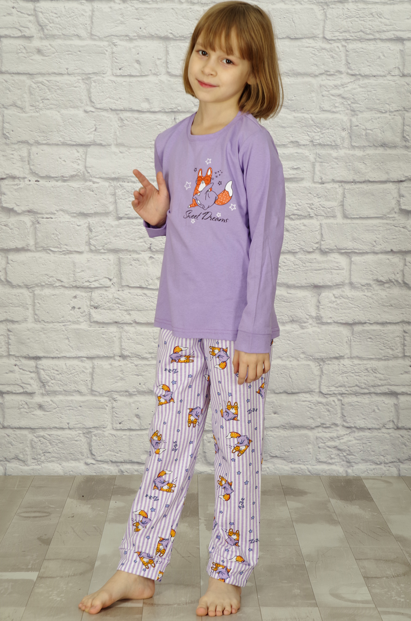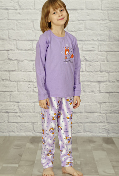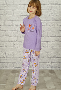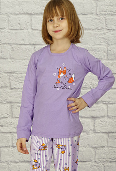 | Описание: | Уютная хлопковая пижамка для девочек. Футболка однотонная прямого кроя, с длинным рукавом на манжете, на полочке небольшой принт "симпатичный и милый лисёнок". Брючки из ткани с набивным рисунком, снизу на манжете. В таком комплекте можно не только спать, но и играть. Ткань кулирка - мягкая, приятная к телу и комфортная для сна. |