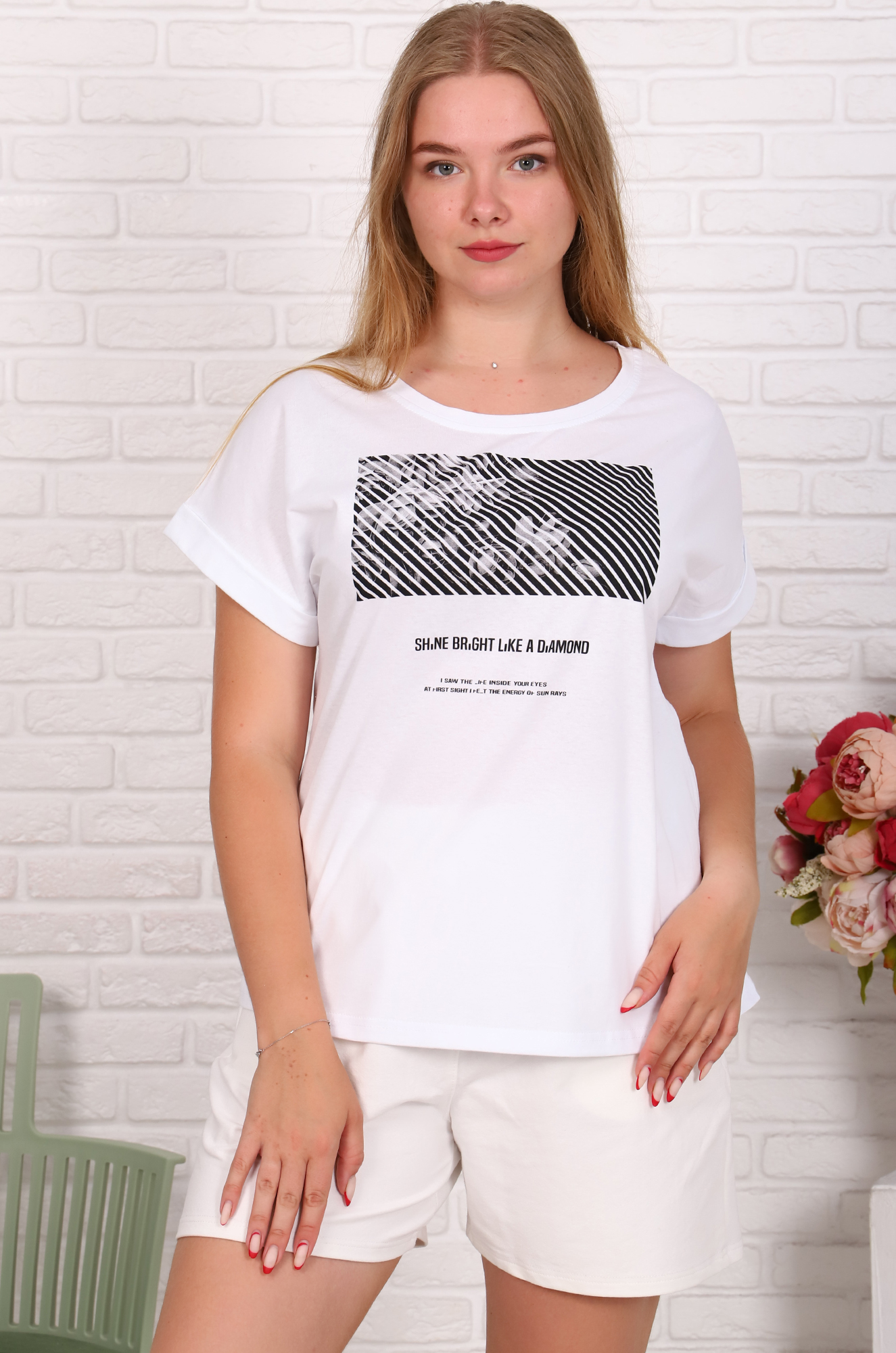 Красивая, нежная и женственная модель футболки. Незаменимая вещь в гардеробе, подходит к шортам, джинсам, брюкам или юбкам. Модель приталенного силуэта, с цельнокроенным рукавом на манжетах, стильный вырез "галочкой", на полочке печатный принт. Ткань кулирка - мягкая, лёгкая и приятная к телу. |