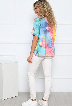 Летняя яркая футболка в стиле "оверсайз". Удлинённый рукав с подворотом, спущенное плечо, свободный крой - всё собрано в этой модели. С такой футболкой вы создадите модный образ на каждый день! Она отлично смотрится с джинсами, шортами, юбками, леггинсами и велосипедками. Ткань кулирка - комфортная, мягкая и приятная к телу. |