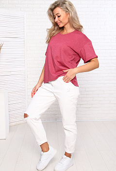 Самая популярная, универсальная, практичная и удобная вещь в гардеробе - футболка! Этот предмет одежды мы носим круглый год. Одна из топовых моделей: футболка размера оверсайз. Модный удлинённый рукав с подворотом, спущенное плечо, свободный крой - всё собрано в этой модели. С такой футболкой вы создадите классный образ на каждый день! Она отлично смотрится с джинсами, шортами, юбками, леггинсами и велосипедками. Ткань меланжированная кулирка с добавлением пэ нити - комфортная, практичная в носке и приятная к телу. |