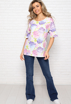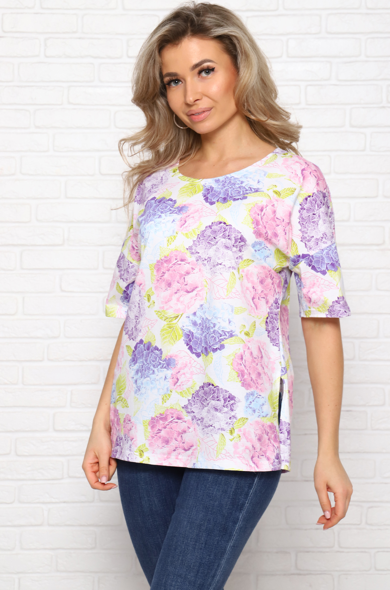 Стильная хлопковая женская футболка. Модель удлинённая, свободного прямого кроя,со спущенным рукавом. По бокам разрезы. Ткань кулирка - мягкая и приятная к телу, комфортная в любую погоду. |