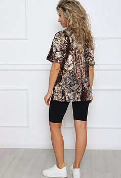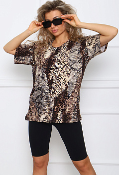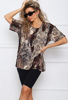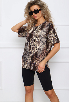 Стильная женская футболка из мягкой вискозы с леопардовым принтом. Модель оверсайз, удлинённая, свободного прямого кроя,со спущенным рукавом. По бокам разрезы. Футболка придется по нраву многим любителям вещей оверсайз, а интересный яркий принт не оставит равнодушным. Леопардовый рисунок это признаный символ женственности и успеха. |