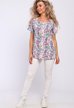 | Описание: | Женская хлопковая футболка. Модель прямого кроя, рукав втачной. Ткань кулирка с набивным рисунком. |