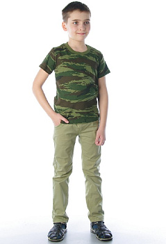 Камуфлированная детская футболка из мягкого трикотажного полотна со 100%; содержанием хлопка. Отличный выбор для подростающих защитников отечества. |