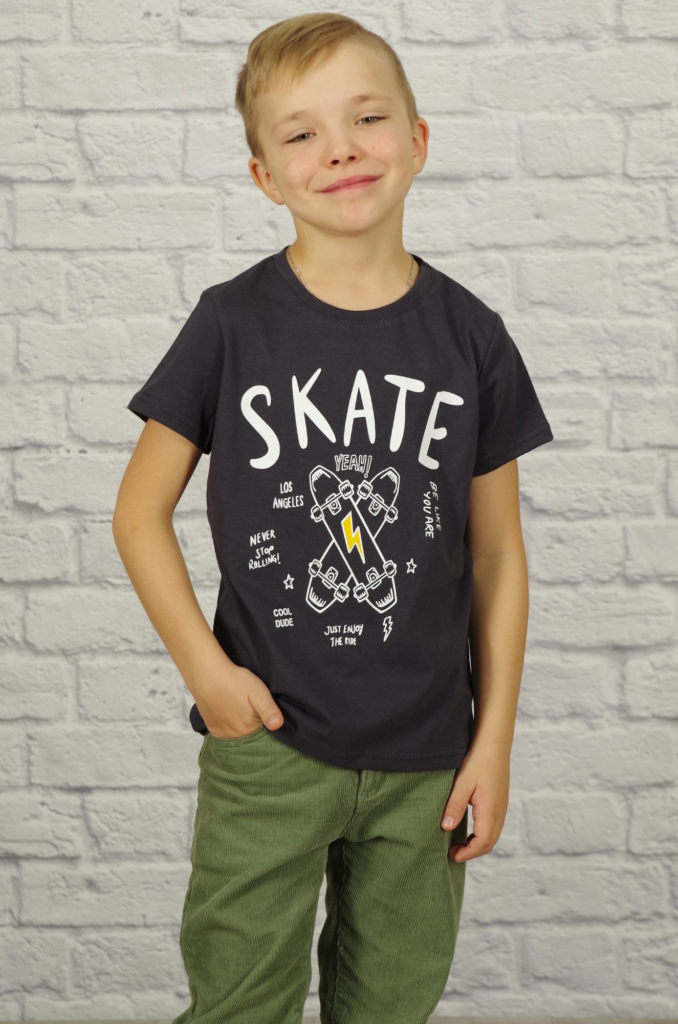 Хлопковая футболка для мальчика. Модель прямого кроя. На полочке печатный принт. Ткань кулирка - комфортная, мягкая и приятная к телу. |