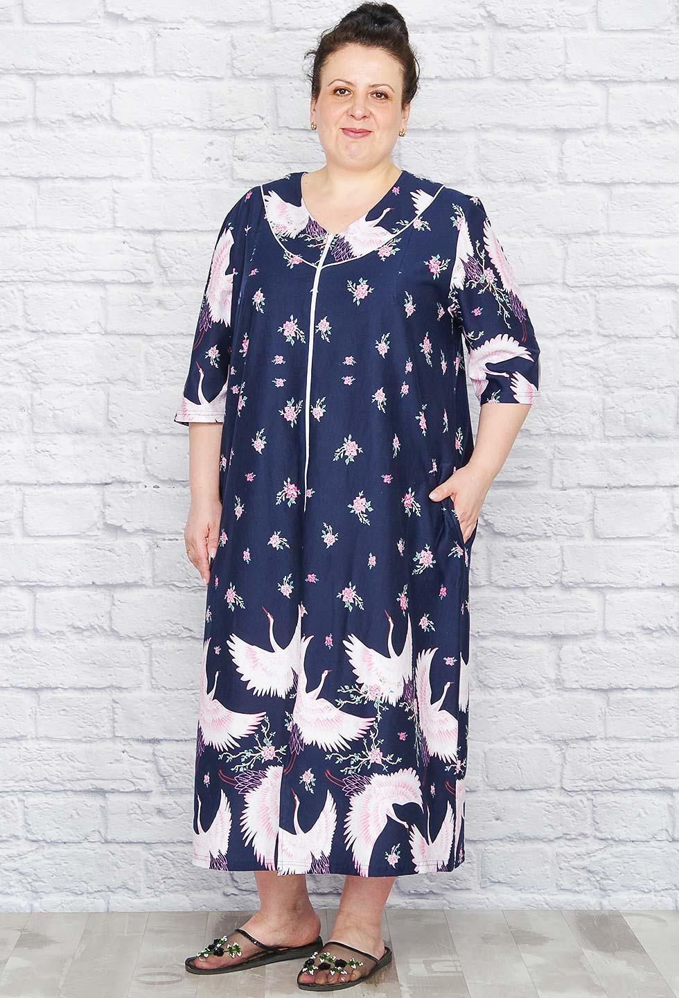 Хлопковый домашний халат для пышных дам с удобным рукавом 3/4. Модель прямая, на молнии, с боковыми карманами. Комфортная длина. Рост модели 168 см. Ткань кулирка. Обратите внимание!!! Расцветки данного изделия в ассортименте!!! |