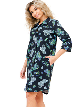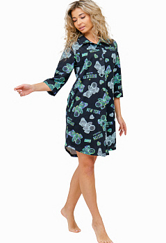 Лёгкий халатик из хлопка в рубашечном стиле. Втачной рукав 3/4 с отворотом, отложной воротник, застёжка на пуговицы, карманы в боковых швах. Низ изделия имеет фигурные вырезы. Ткань кулирка. |