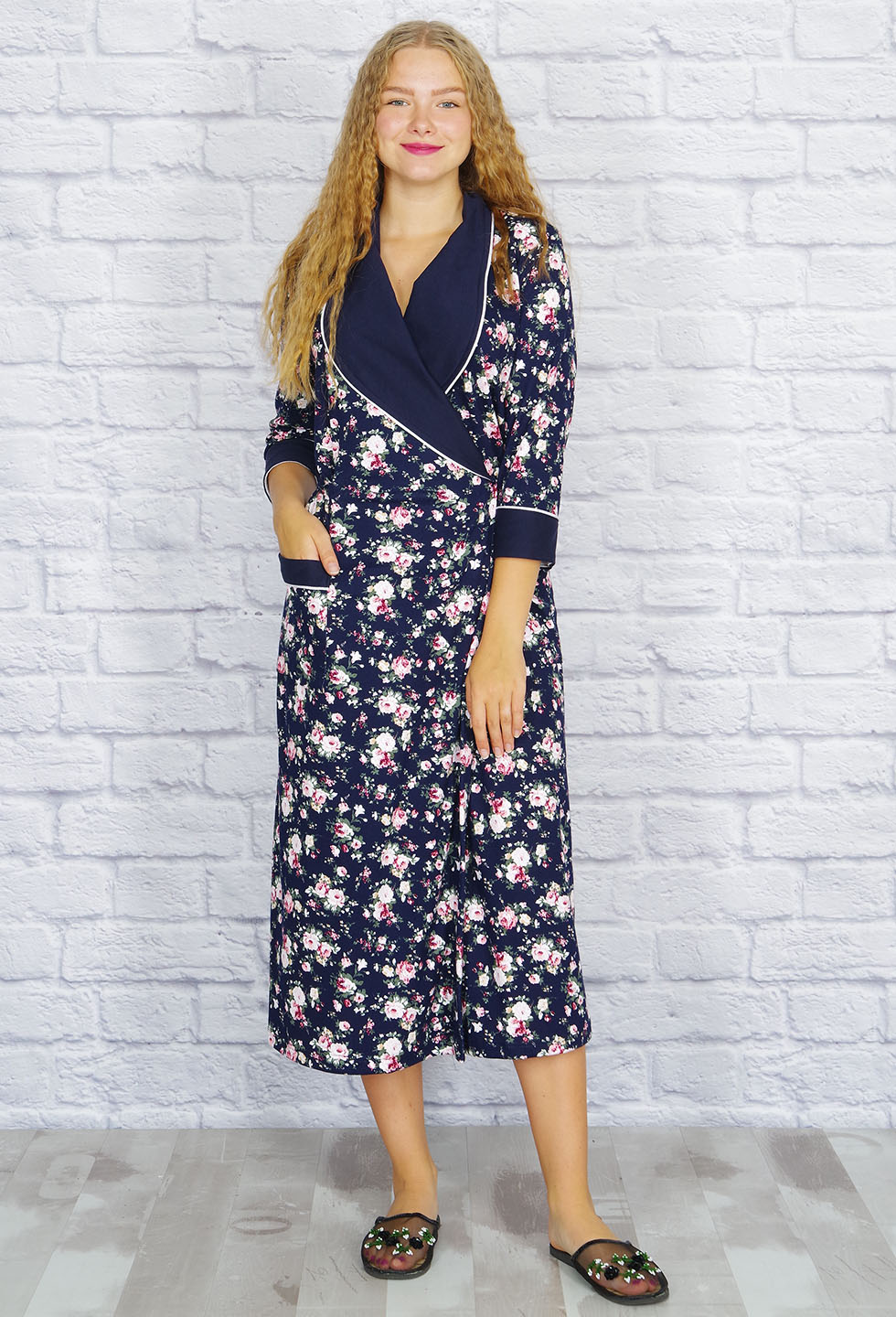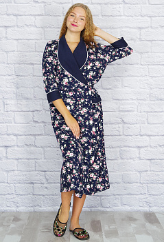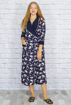 Халат на запах с воротником-шалька и удобными карманами, рукав 3/4, комфортная длина. Ткань - интерлок - пенье высокого качества, мягкий, шелковистый, очень приятный к телу. Рост модели 176 см, длина по спинке изделия 125 см. |