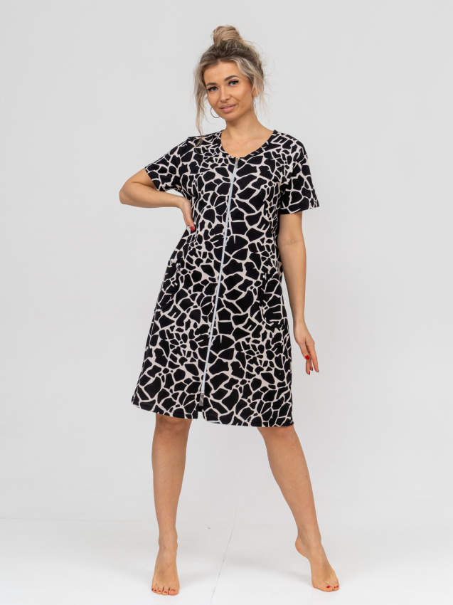Легкий летний халатик на молнии. Модель прямая, средней длины, с коротким рукавом и удобными накладными карманами. Ткань кулирка - мягкая, комфортная и приятная к телу. |