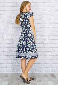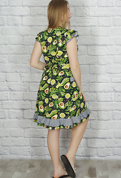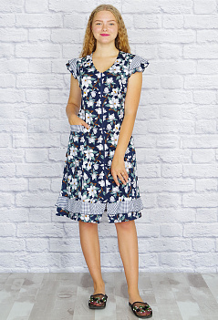 Симпатичный хлопковый домашний халатик на молнии с удобными накладными карманами, сзади тонкий поясок. Мило смотрится оборочка по низу изделия и на рукавах-"крылышках". Комфортная длина. Ткань кулирка. Рост модели 176 см, дина изделия по спинке 100 см. |