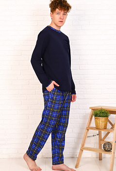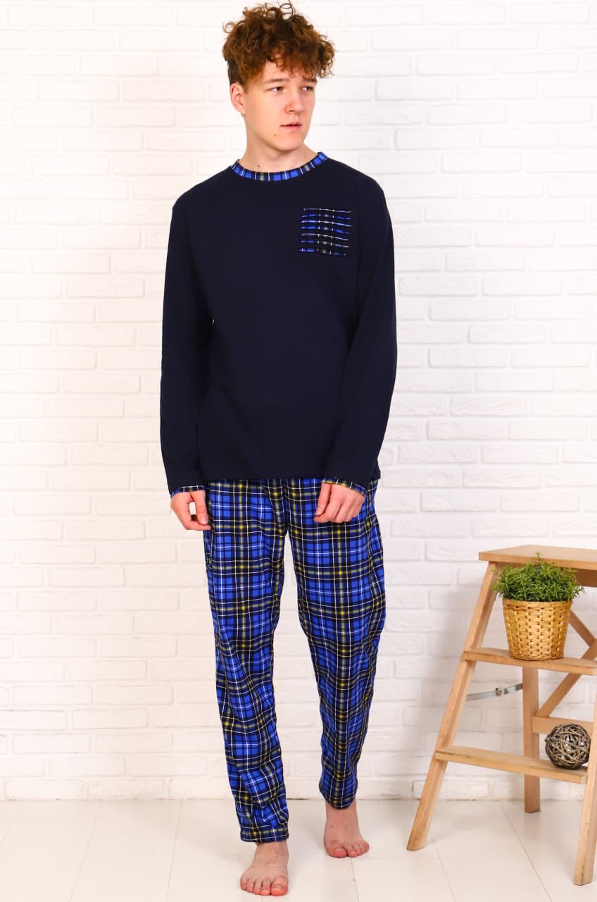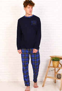Удобный домашний костюм для мужчин, которые хотят выглядеть стильно даже дома! Ткань мягкая и приятная к телу, кулирное полотно. Брюки зауженные с боковыми карманами, пояс на резинке, футболка с длинным рукавом прямого кроя, горловина и рукава окантованы в тон брюк, на полочке декоративная деталь. Такой костюм вполне может подойти в качестве пижамы. Отличный вариант домашней одежды для дома и отдыха от Ивановского производителя! |