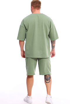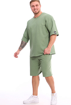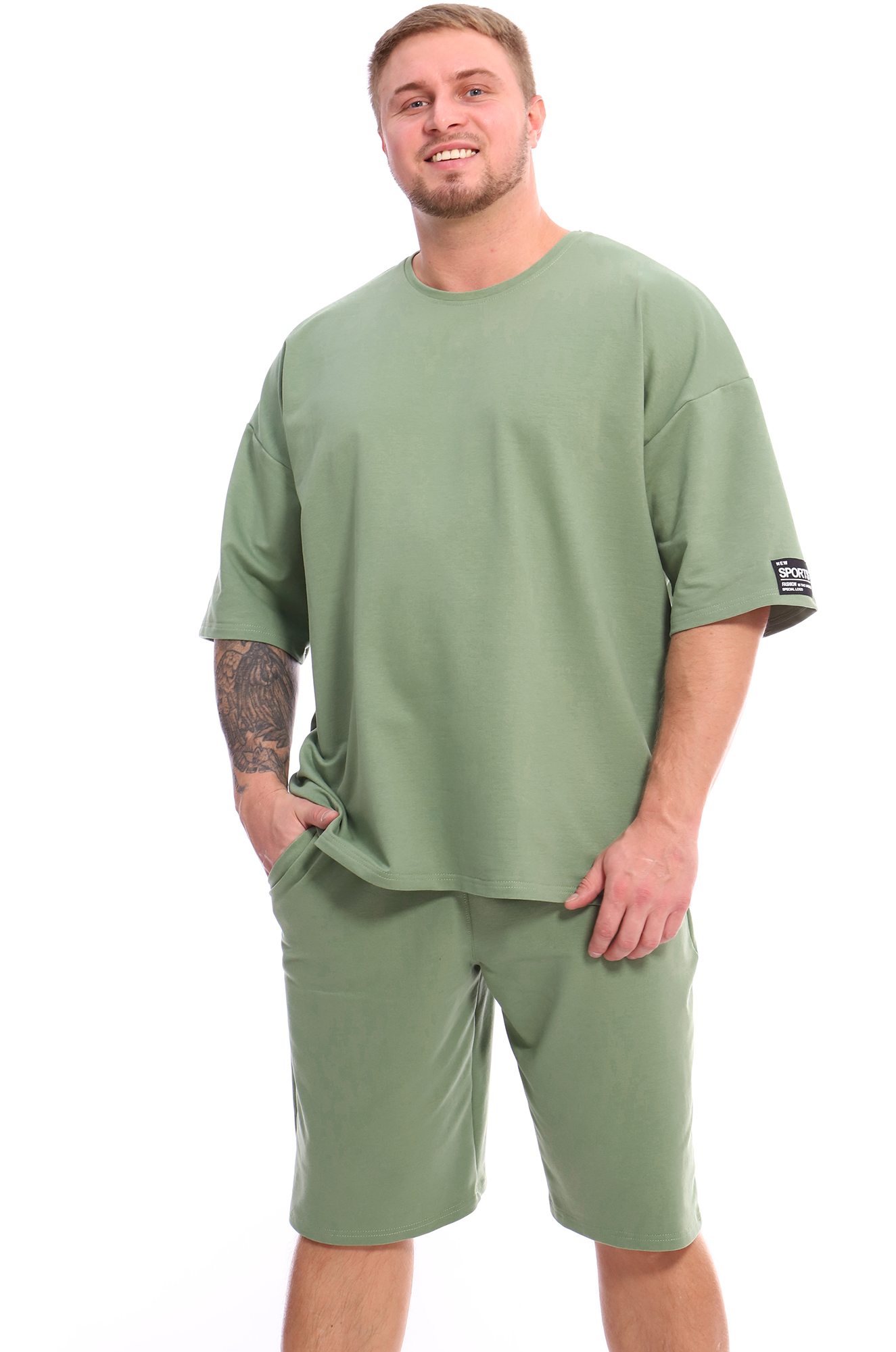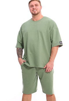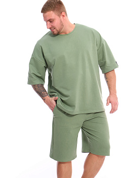 Мужской костюм из футера с лайкрой в стиле oversaiz. Футболка cвободного кроя, удлиненный втачной рукав и спущенное плечо подарит ощущение легкости и полную свободу движений. Удобные шорты с поясом на широкой резинке и боковыми карманами в шве. Этот костюм станет отличным вариантом одежды для дома, отдыха и спорта! |