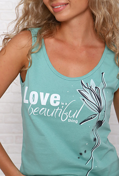 Самая удобная и комфортная летняя вещь в гардеробе - это хлопковая майка. Модель прямого классического кроя на широкой бретели, на полочке эффектный печатный принт. Ткань кулирка - мягкая, приятная к телу. |