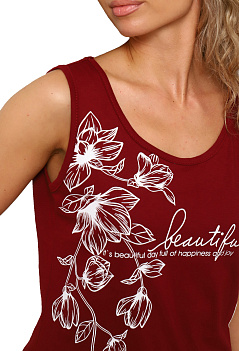 Самая удобная и комфортная летняя вещь в гардеробе - это хлопковая майка. Модель прямого классического кроя на широкой бретели, на полочке эффектный печатный принт. Ткань кулирка - мягкая, приятная к телу. |