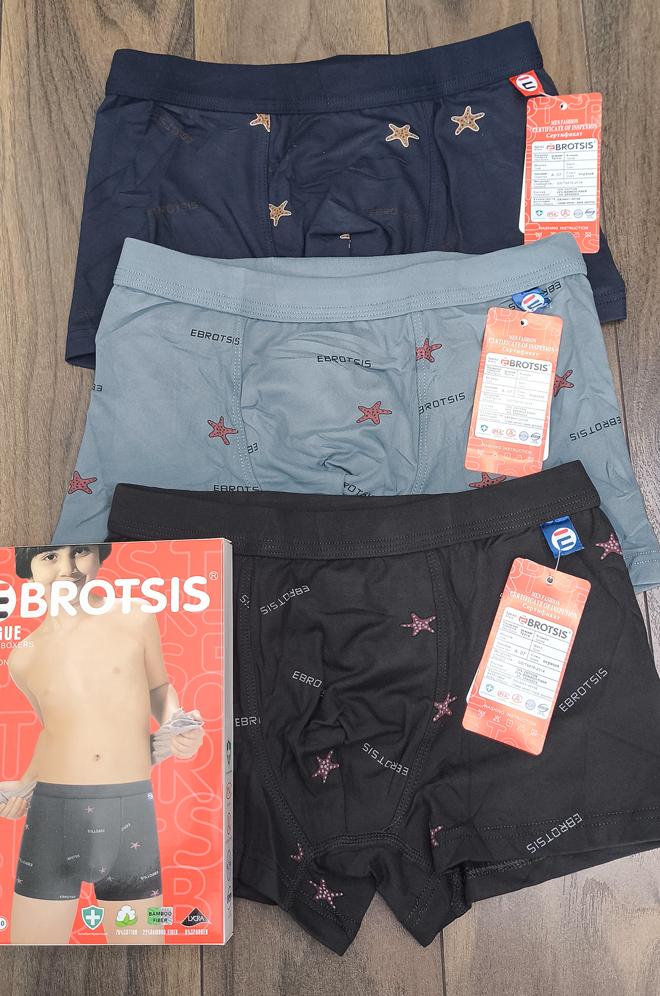 Подростковые боксеры из эластичного хлопка с добавлением бамбуковой нити. Широкая пришивная резинка . Производства Китай. Трусы продаются в упаковке по 2 штуки. Цена указана за 1 шт. |