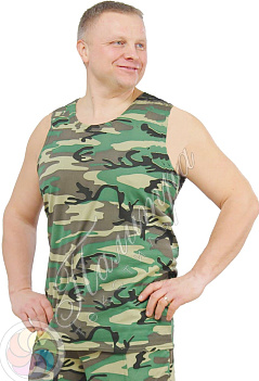 Майка камуфлированная, 4-х цветная, двухстороннее активное крашение. В производстве используется трикотаж, кулирное полотно, плотностью 150 г/м2, состав 100% хлопок. Отлично подходит для охоты и рыбалки. |