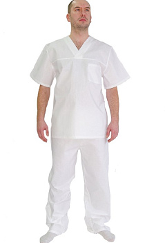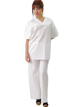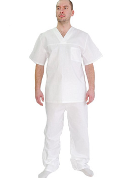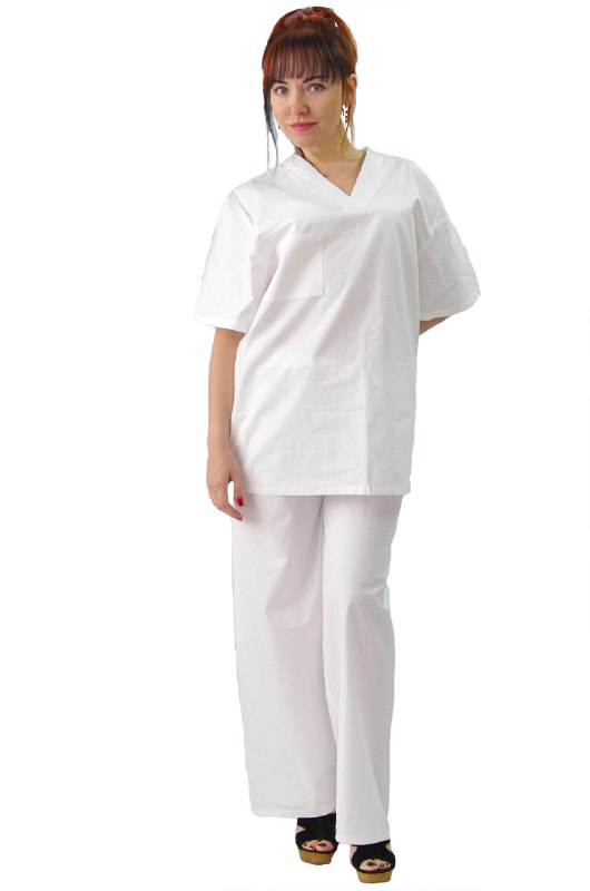 Костюм выполнен из бязи отбеленной ГОСТ, состав: 100% хлопок. ГОСТ 9897-88 |