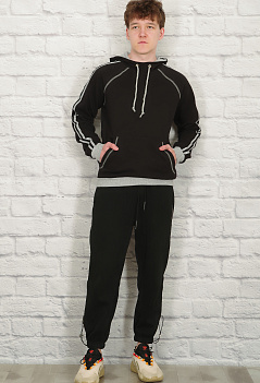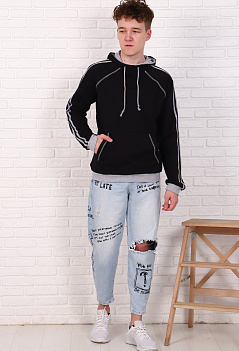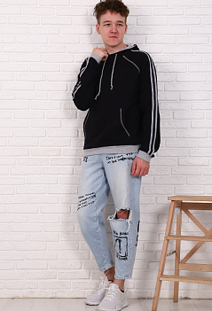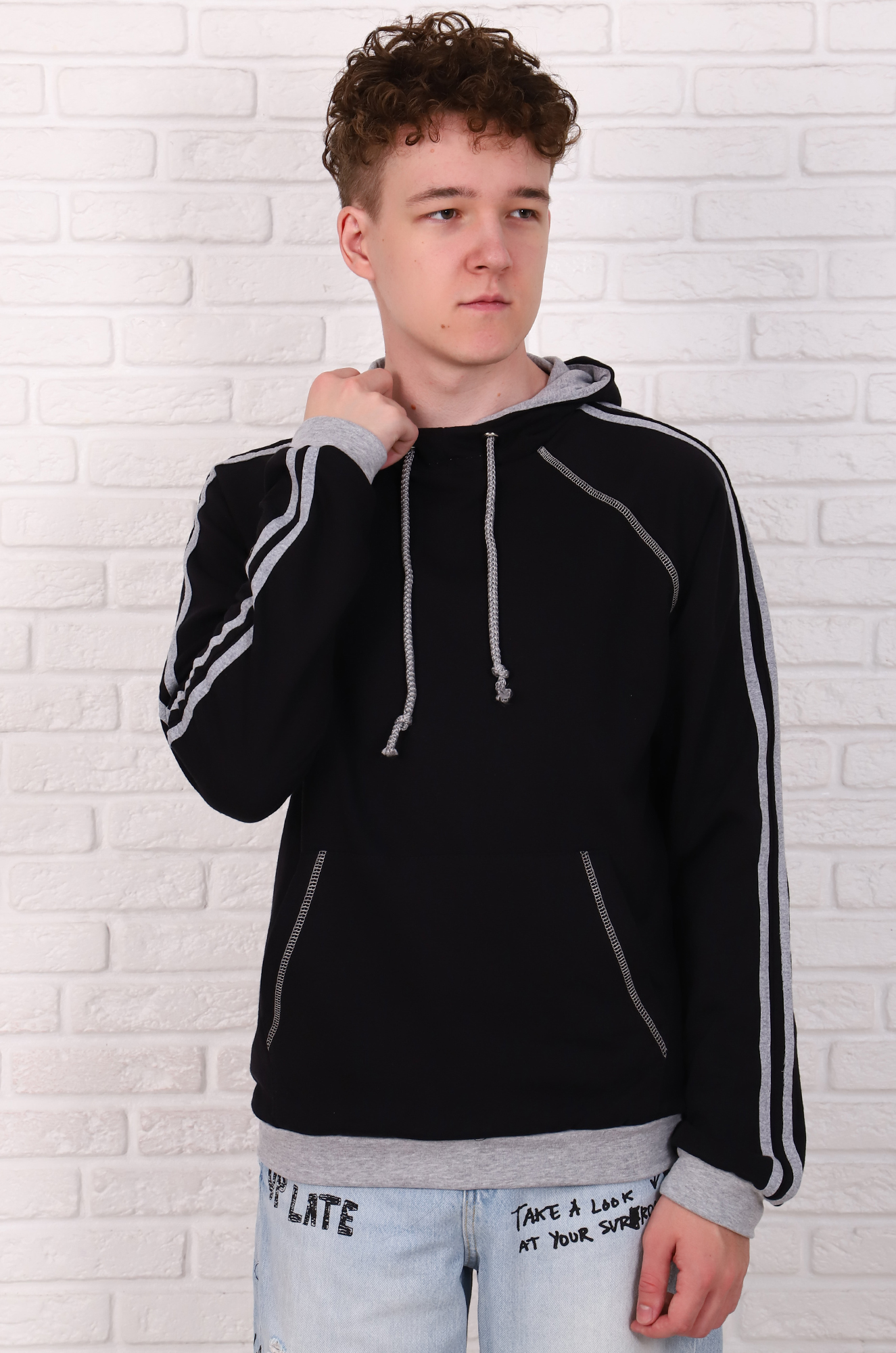 Удобная толстовка в спортивном стиле. Модель с контрастными лампасами на рукавах и карманом - "кенгуру". Двойной капюшон с подкладкой из кулирного полотна защитит от непогоды. Манжеты из эластичной рибаны, рукав - реглан. Ткань - футер с небольшим начесом плотностью 190 г/м2. Отличный вариант на демисезон. |