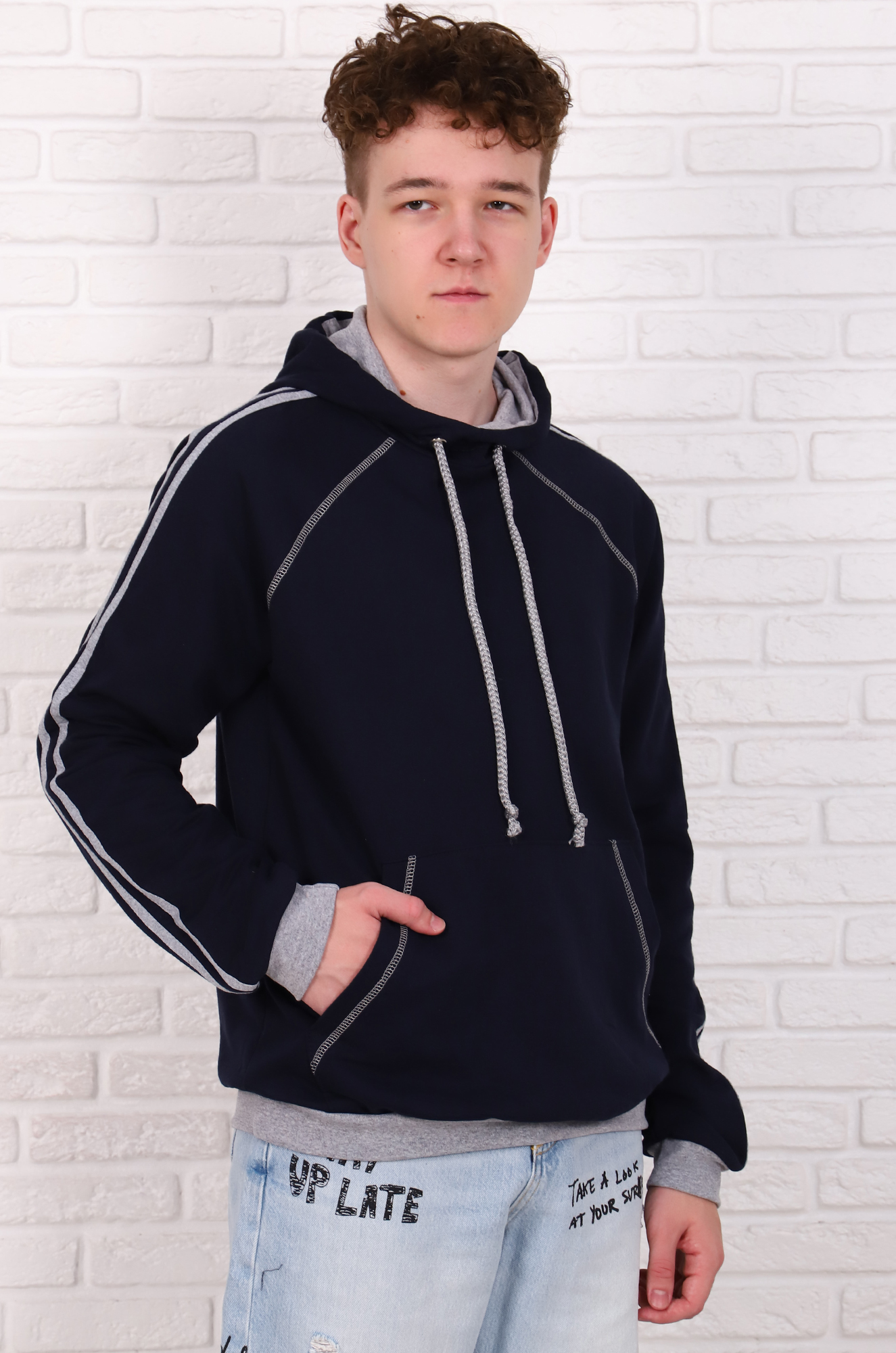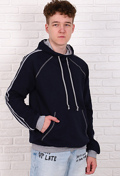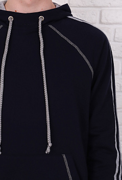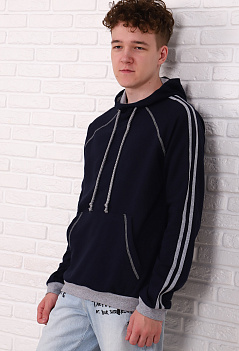 Удобная толстовка в спортивном стиле. Модель с контрастными лампасами на рукавах и карманом - "кенгуру". Двойной капюшон с подкладкой из кулирного полотна защитит от непогоды. Манжеты из эластичной рибаны, рукав - реглан. Ткань - футер с небольшим начесом плотностью 190 г/м2. Отличный вариант на демисезон. |
