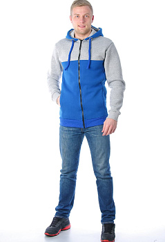 Стильная комбинированная толстовка на молнии с капюшоном. Качественная фурнитура завязок капюшона и толстый шнур, типа плетёный канат, придаёт индивидуальность модели. Спереди для удобства и комфорта толстовка дополнена двумя карманами. Отличный вариант одежды для холодного времени года . |