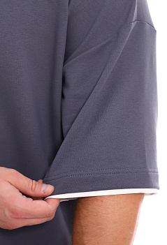 Стильная плотная мужская футболка cвободного кроя с контрастной отделкой по низу и рукавам. Втачной рукав и спущенное плечо подарит ощущение легкости и полную свободу движений. Ткань двухниточный футер с добавлением лайкры. |