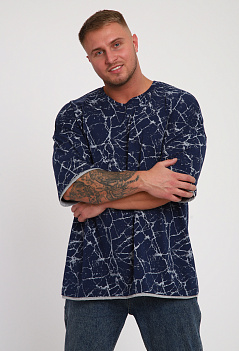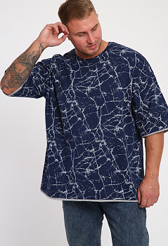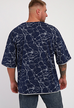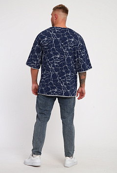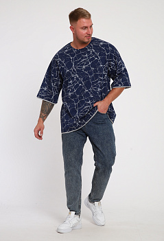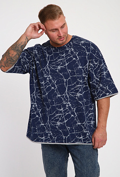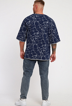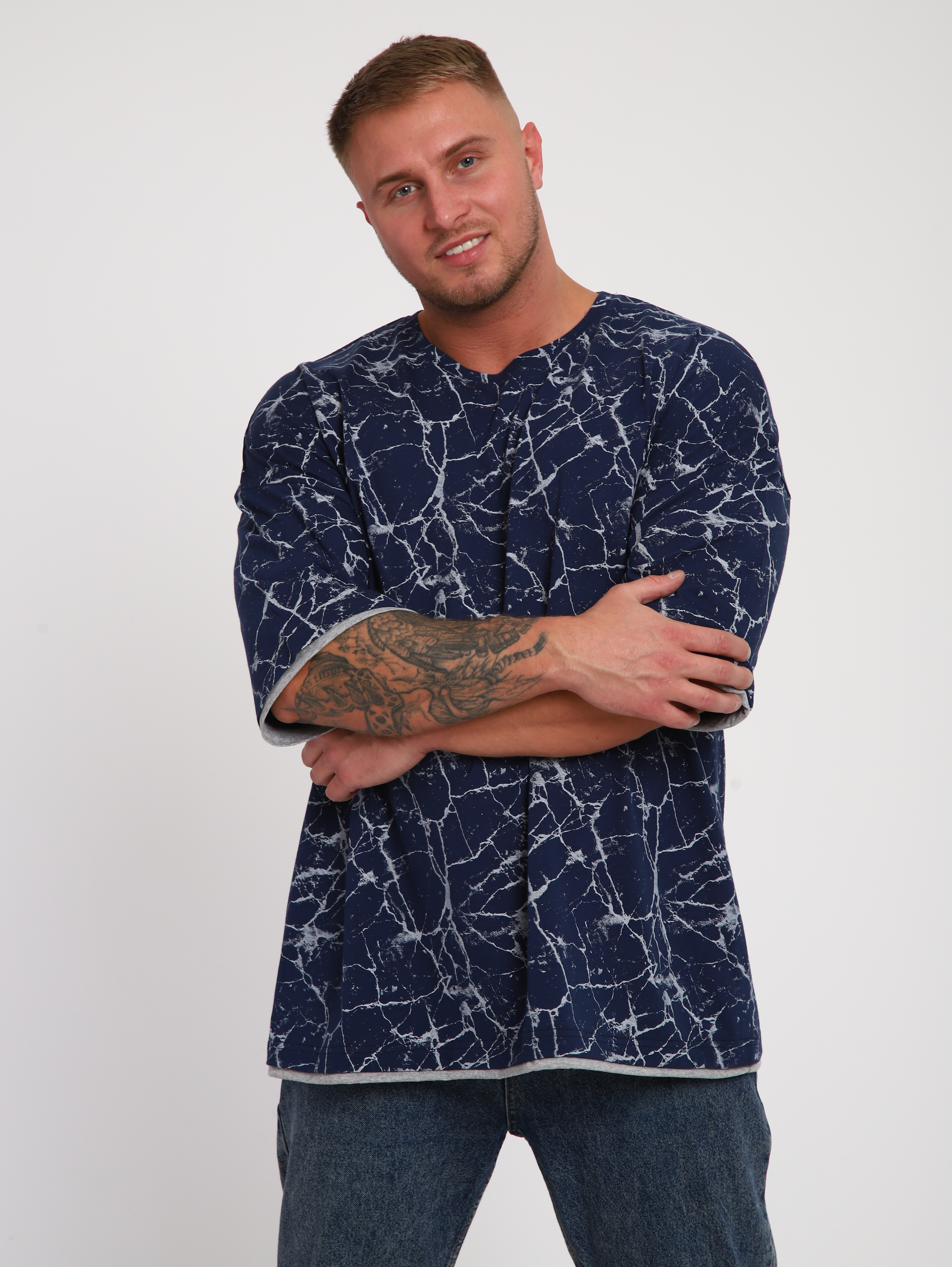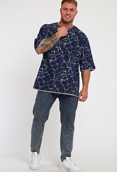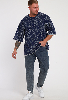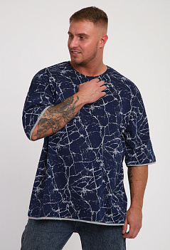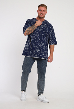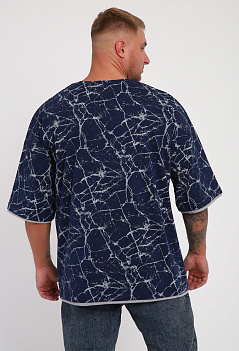 Мужская футболка в стиле oversaiz с контрастной отделкой на рукавах и по низу футболки. Свободный крой, удлиненный втачной рукав и спущенное плечо подарит ощущение легкости и полную свободу движений. Ткань кулика с набивным рисунком. |