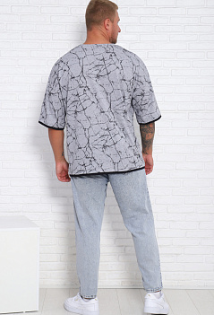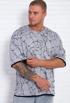 Мужская футболка в стиле oversaiz с контрастной отделкой на рукавах и по низу футболки. Свободный крой, удлиненный втачной рукав и спущенное плечо подарит ощущение легкости и полную свободу движений. Ткань кулика с набивным рисунком. |