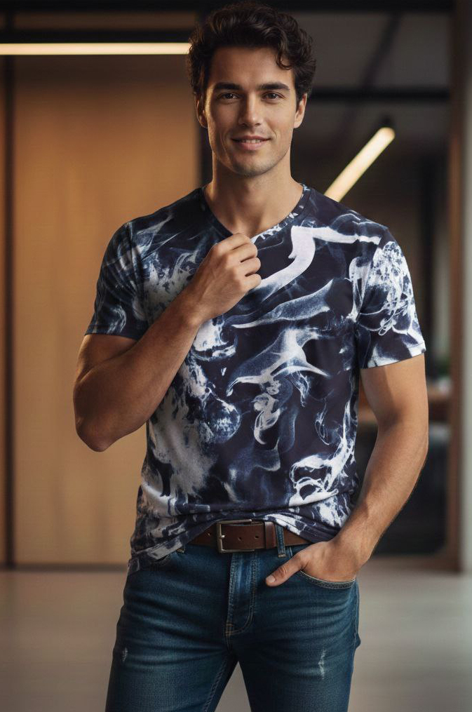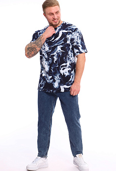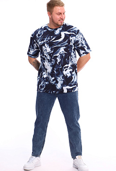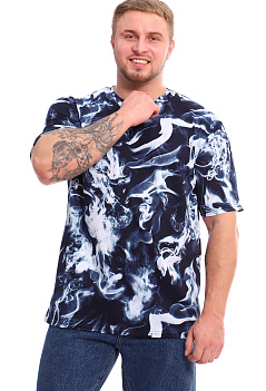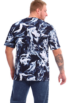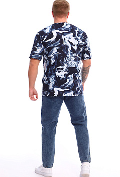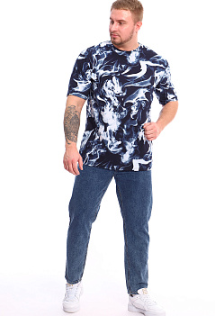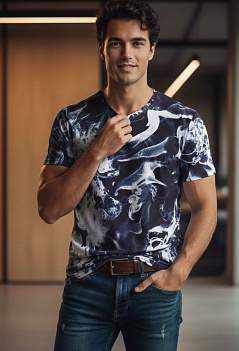 Хлопковая мужская футболка прямого кроя. Необычная и очень эффектная печать набивного рисунка делает модель стильной. Футболка хорошо сочетается с джинсами. Ткань кулирка. |