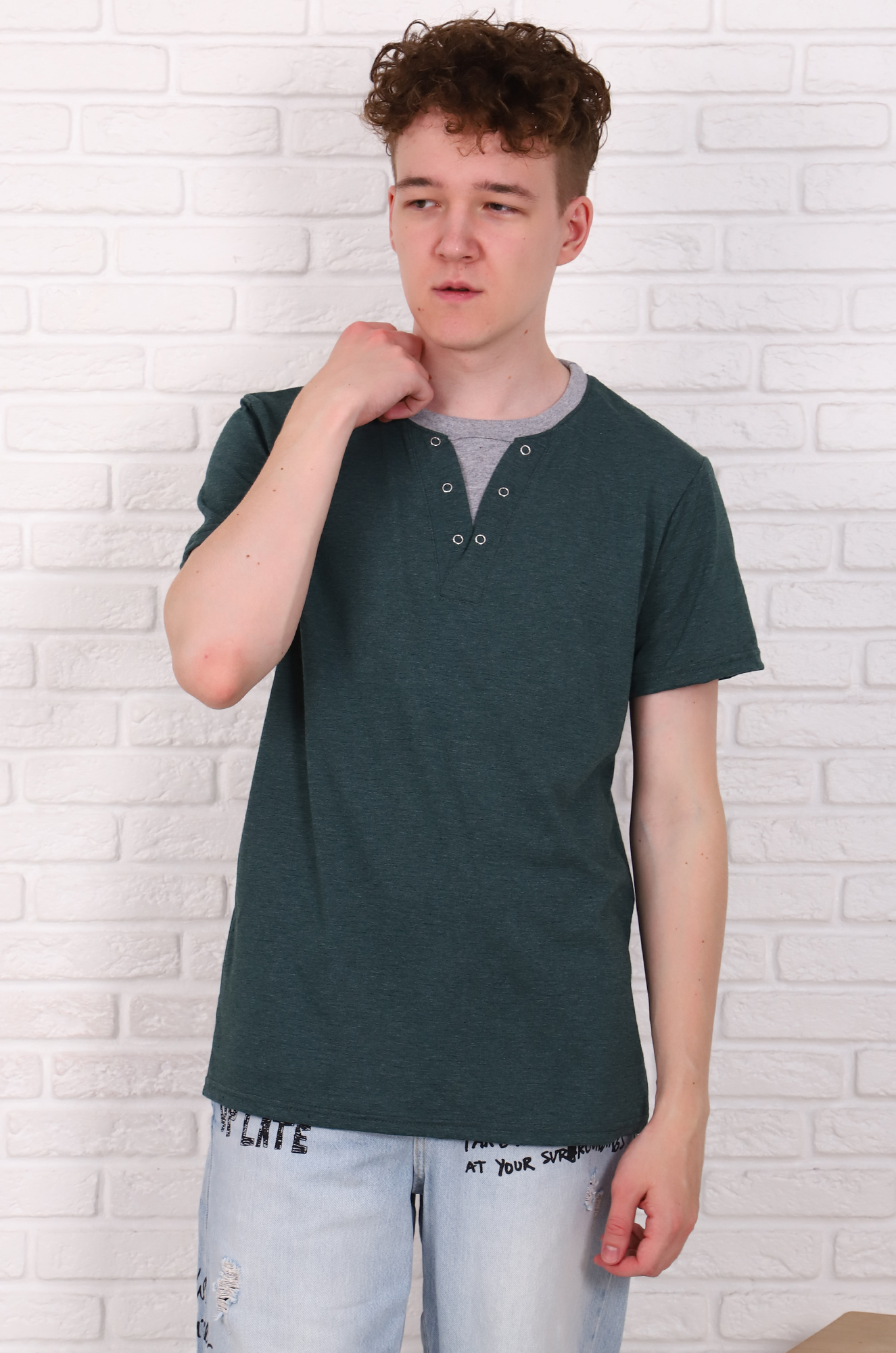 Стильная мужская футболка прямого кроя из кулирки с добавлением пэ нити. Модель сложная - имитирует "двойку", по горловине декоративные клёпки. Хорошо сочетается с джинсами. Ткань меланжированная кулирка, мягкая, практичная и не требует сложного ухода. |