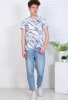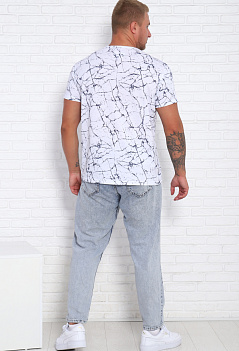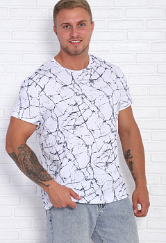 Хлопковая мужская футболка прямого кроя. Эффектная, стильная расцветка "под мрамор" отлично сочетается с джинсами. Ткань меланжированная кулирка с набивным рисунком. |