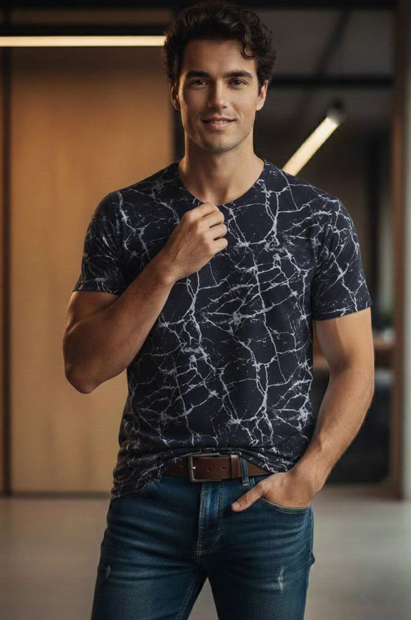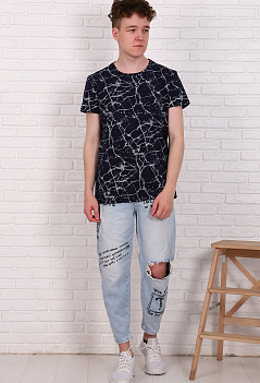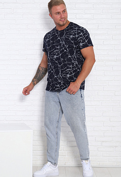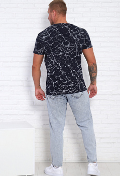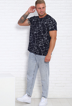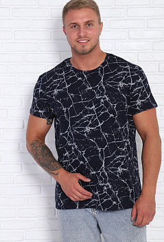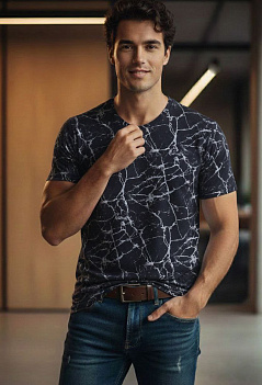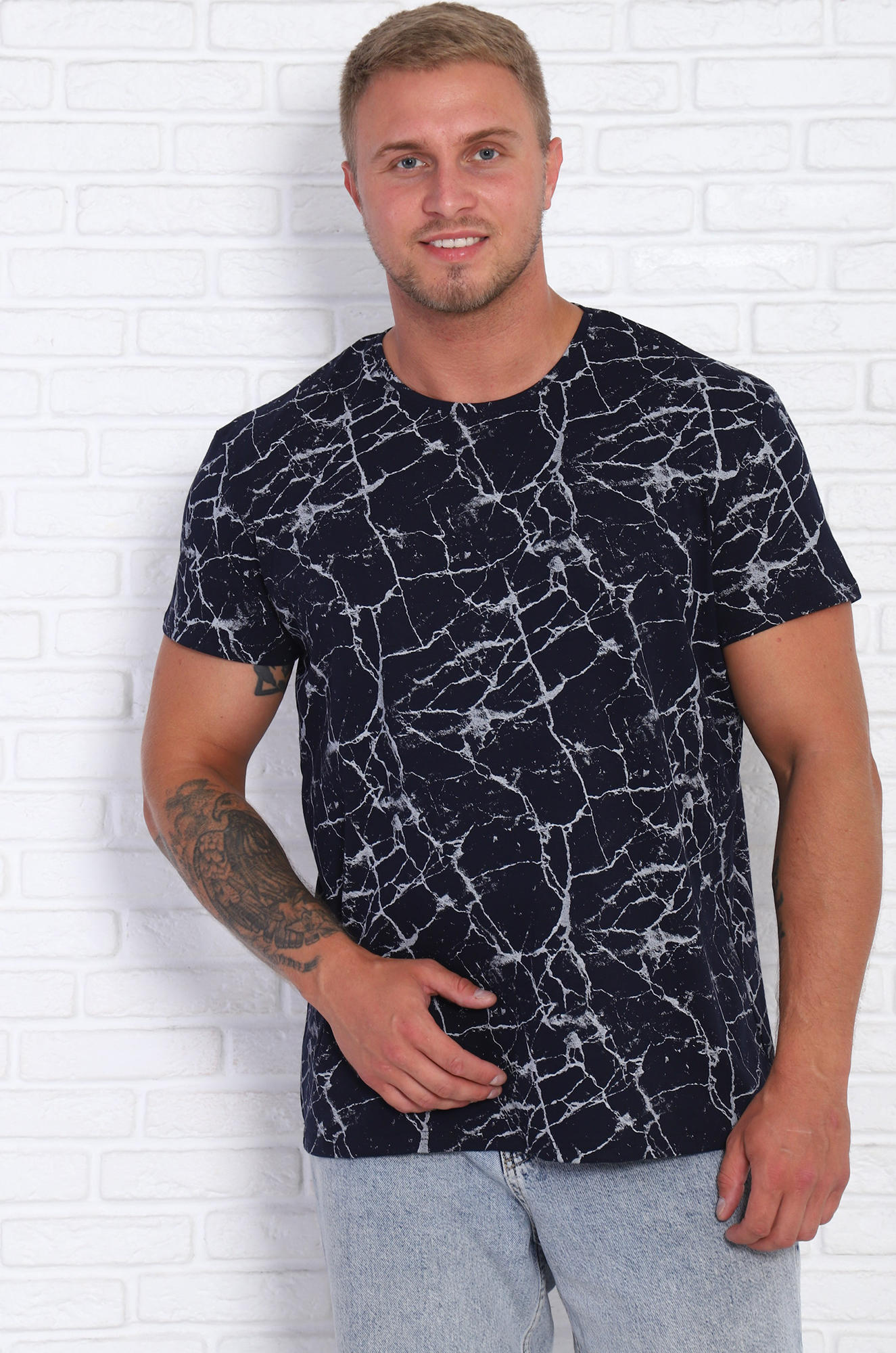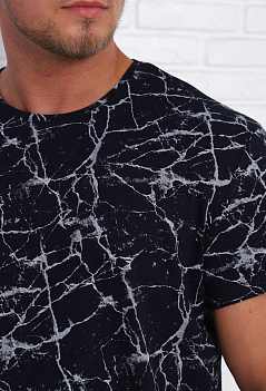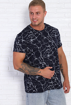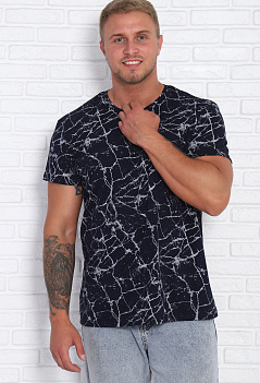 Хлопковая мужская футболка прямого кроя. Эффектная, стильная расцветка "под мрамор" отлично сочетается с джинсами. Ткань кулирка. |