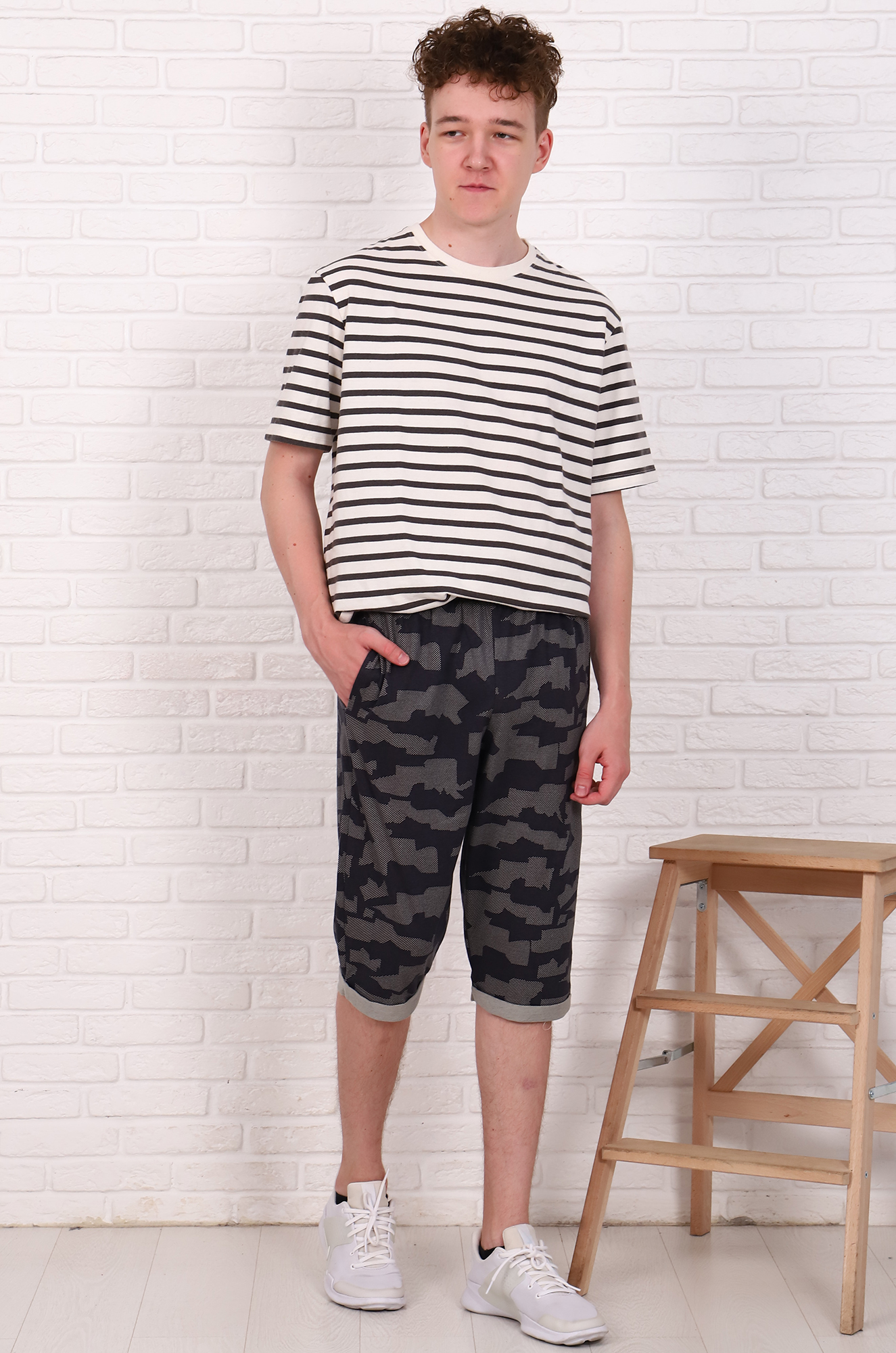 Удобные хлопковые шорты-бермуды в стиле милитари подойдут и для дома, и для отдыха. Модель с боковыми карманами, пояс на широкой резинке, снизу имитация манжета. Подходят на любой возраст! Ткань кулирка. |